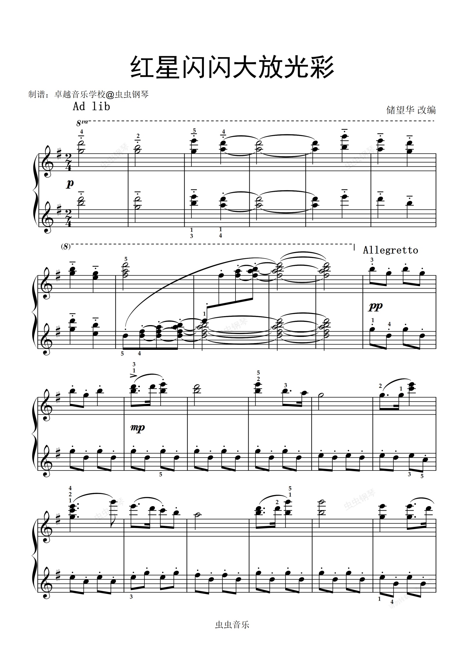 钢琴谱:红星闪闪放光彩 规范校订教学版