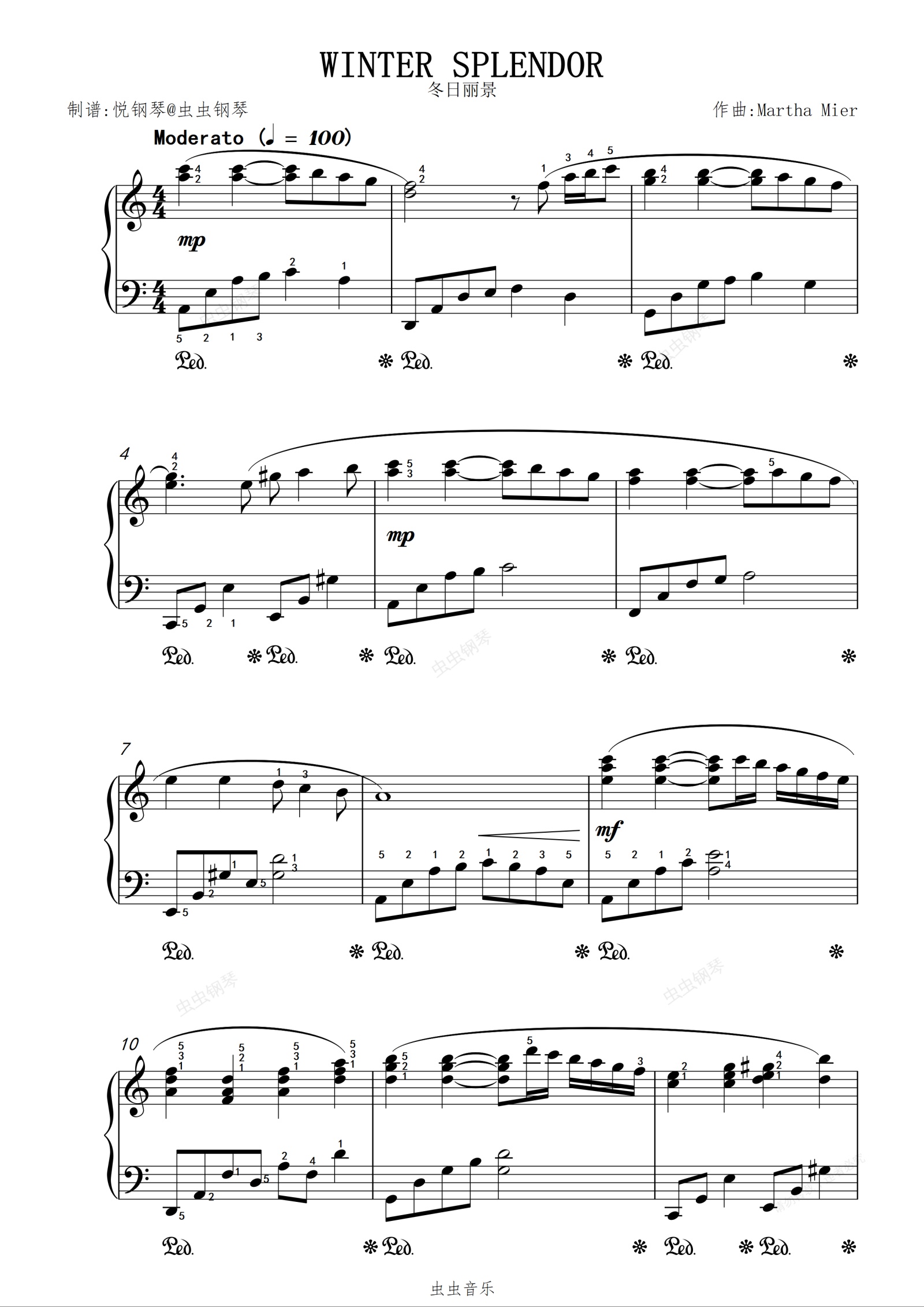 钢琴谱:冬日丽景//Winter Splendor【治愈钢琴小曲】