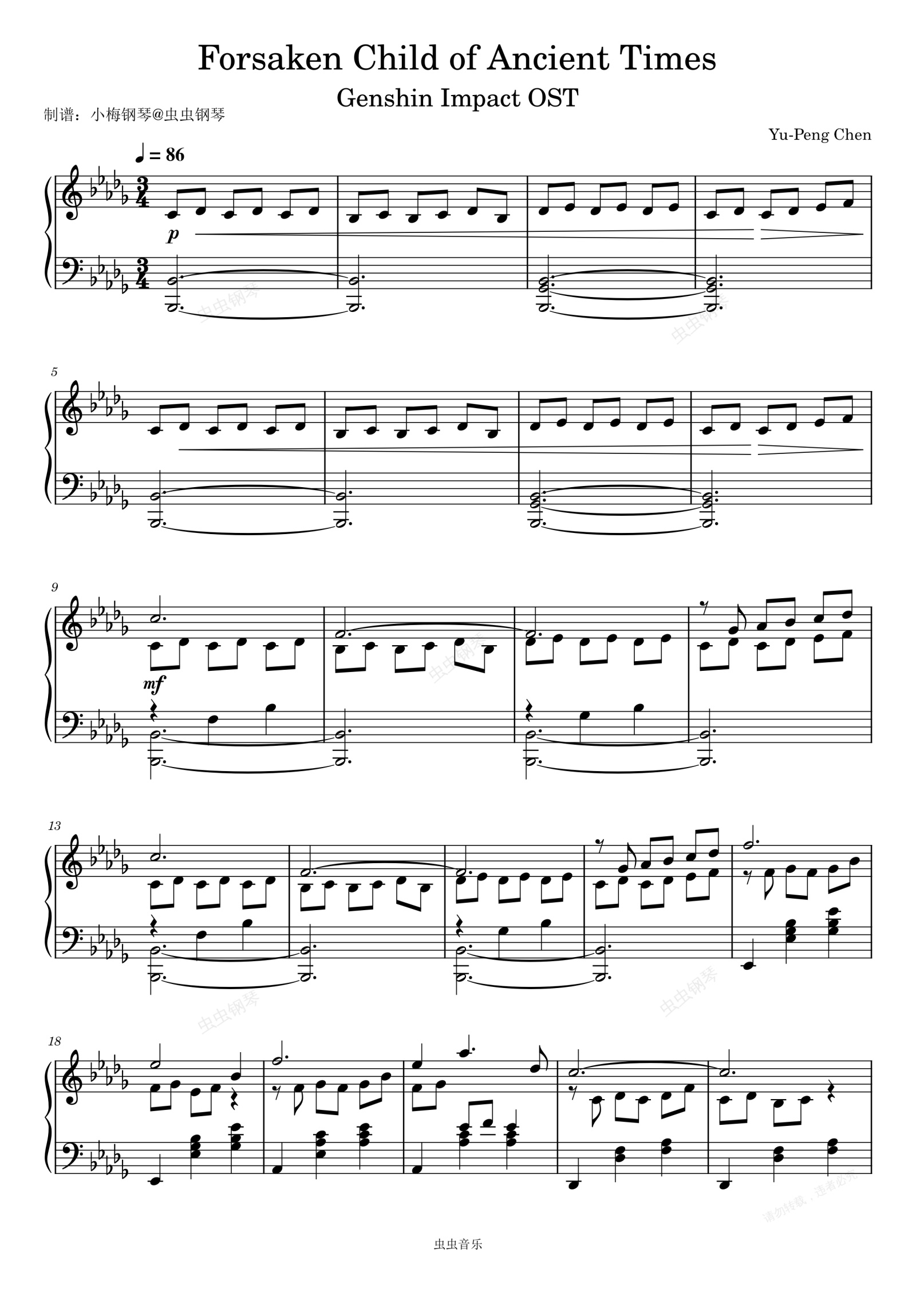 钢琴谱:Forsaken Child of Ancient Times(Genshin Impact OST)