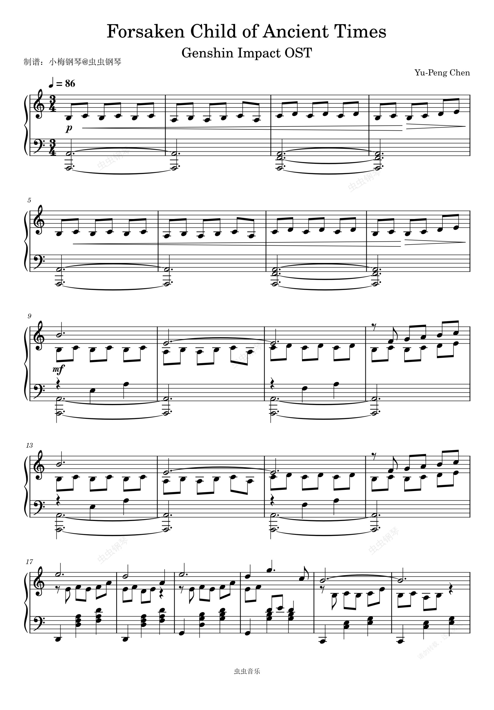 钢琴谱:Forsaken Child of Ancient Times(Genshin Impact OST)