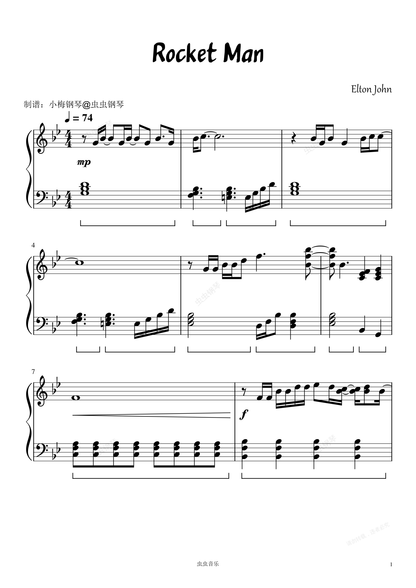 钢琴谱:Rocket Man (I Think It's Going To Be A Long, Long Time) - Elton John (艾尔顿·约翰)