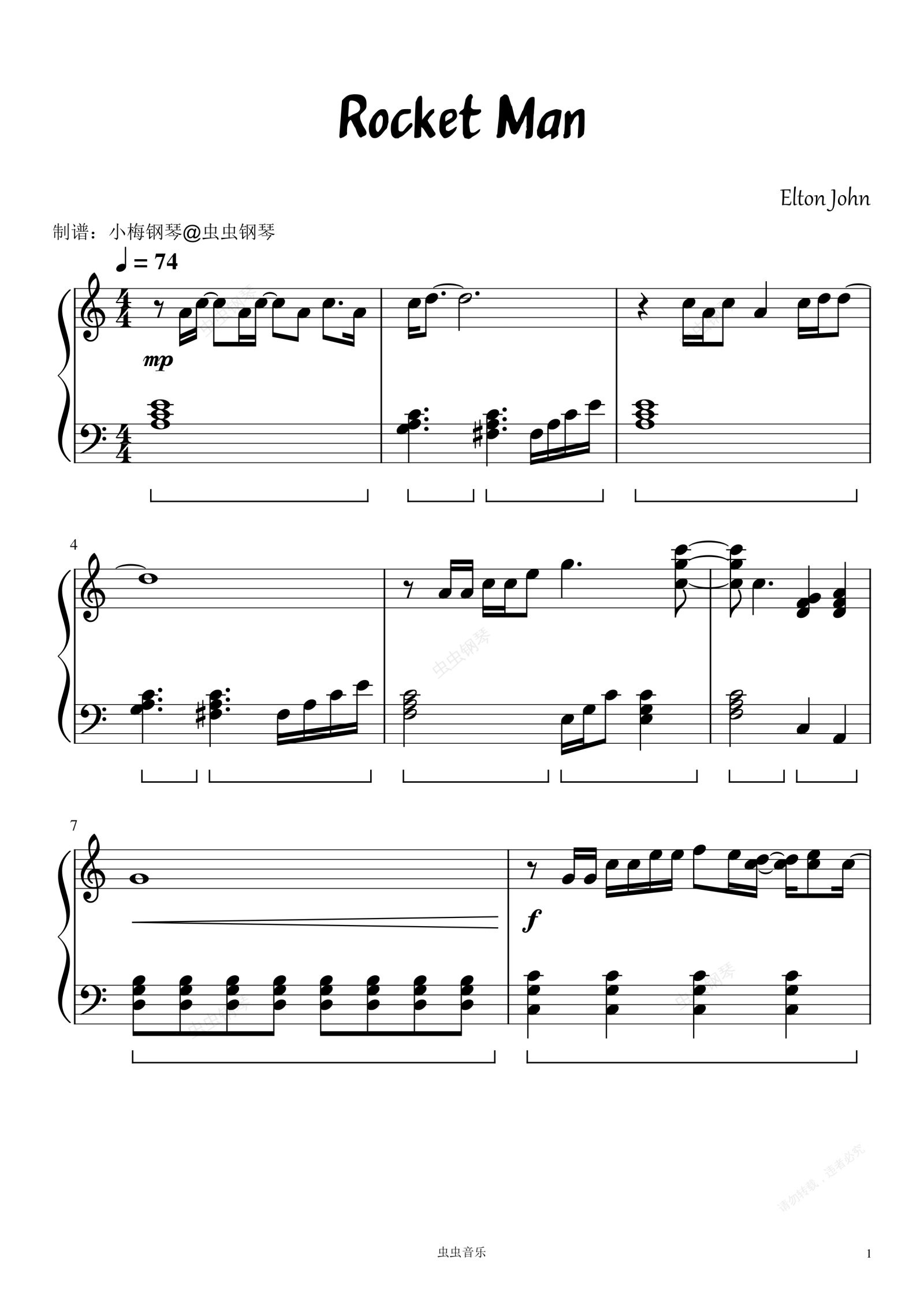 钢琴谱:Rocket Man (I Think It's Going To Be A Long, Long Time) - Elton John (艾尔顿·约翰)