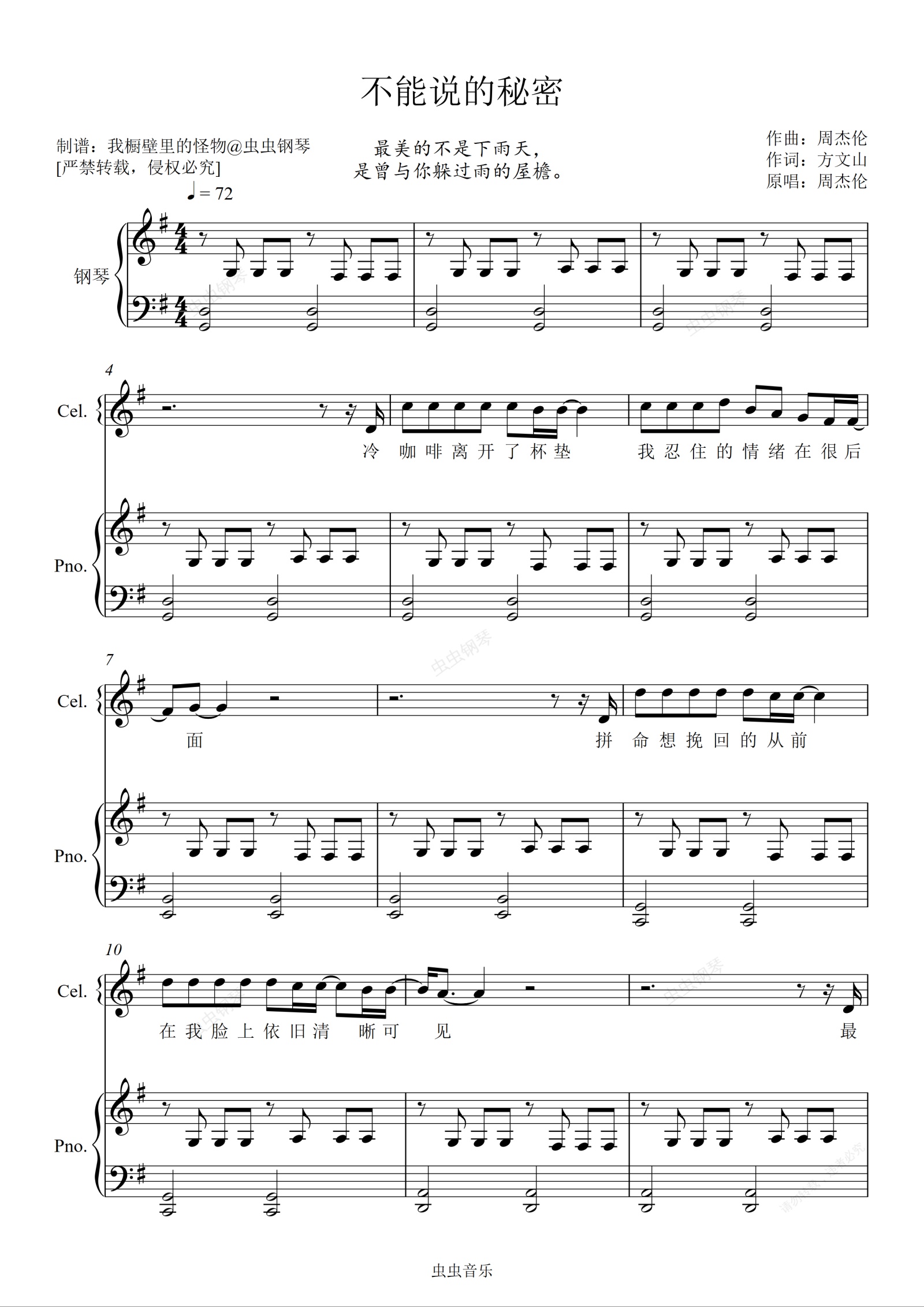 钢琴谱:【绝美弹唱谱】不能说的秘密(完整附歌词)「怪物」