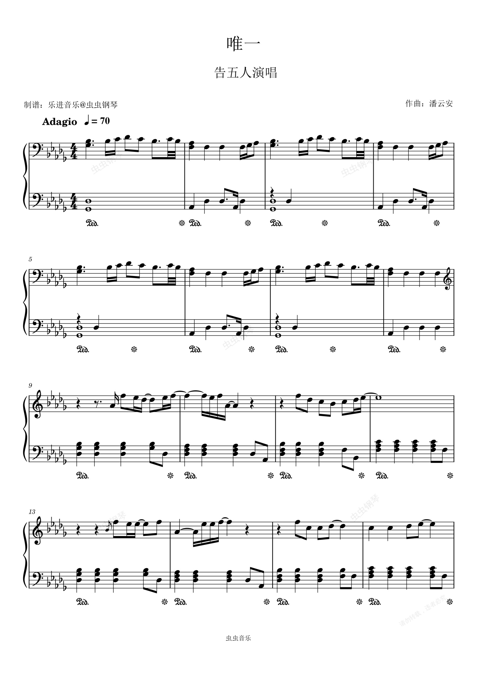 钢琴谱:告五人《唯一》原调高还原