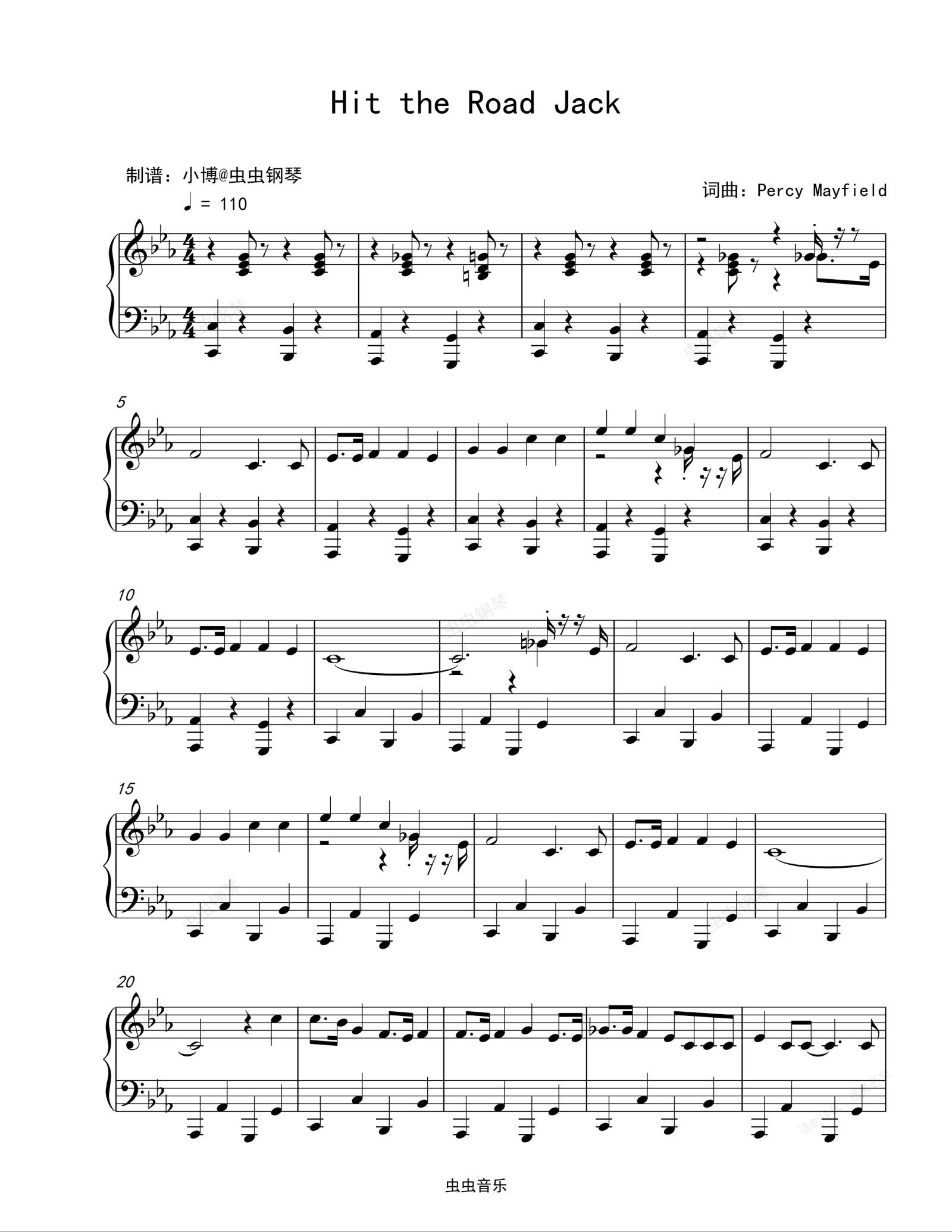 钢琴谱:Hit the Road Jack-雷·查尔斯-简单版