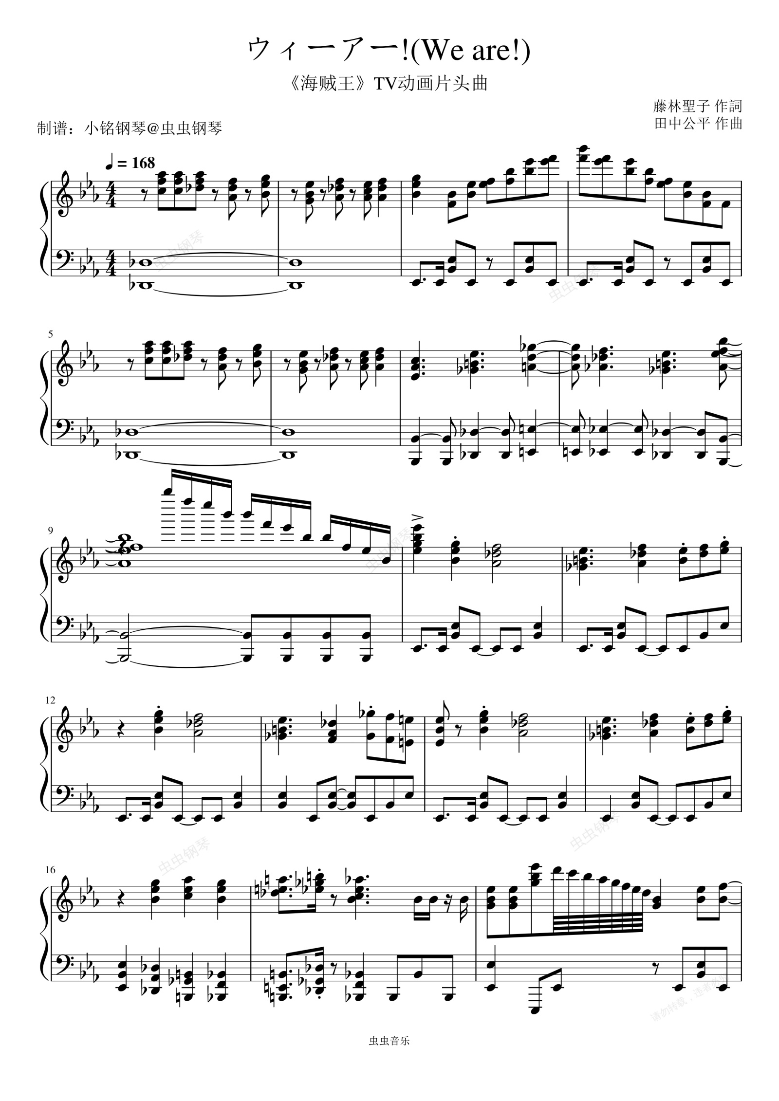 钢琴谱:ウィーアー! - 北谷洋 (きただにひろし) 《海贼王》TV动画片头曲