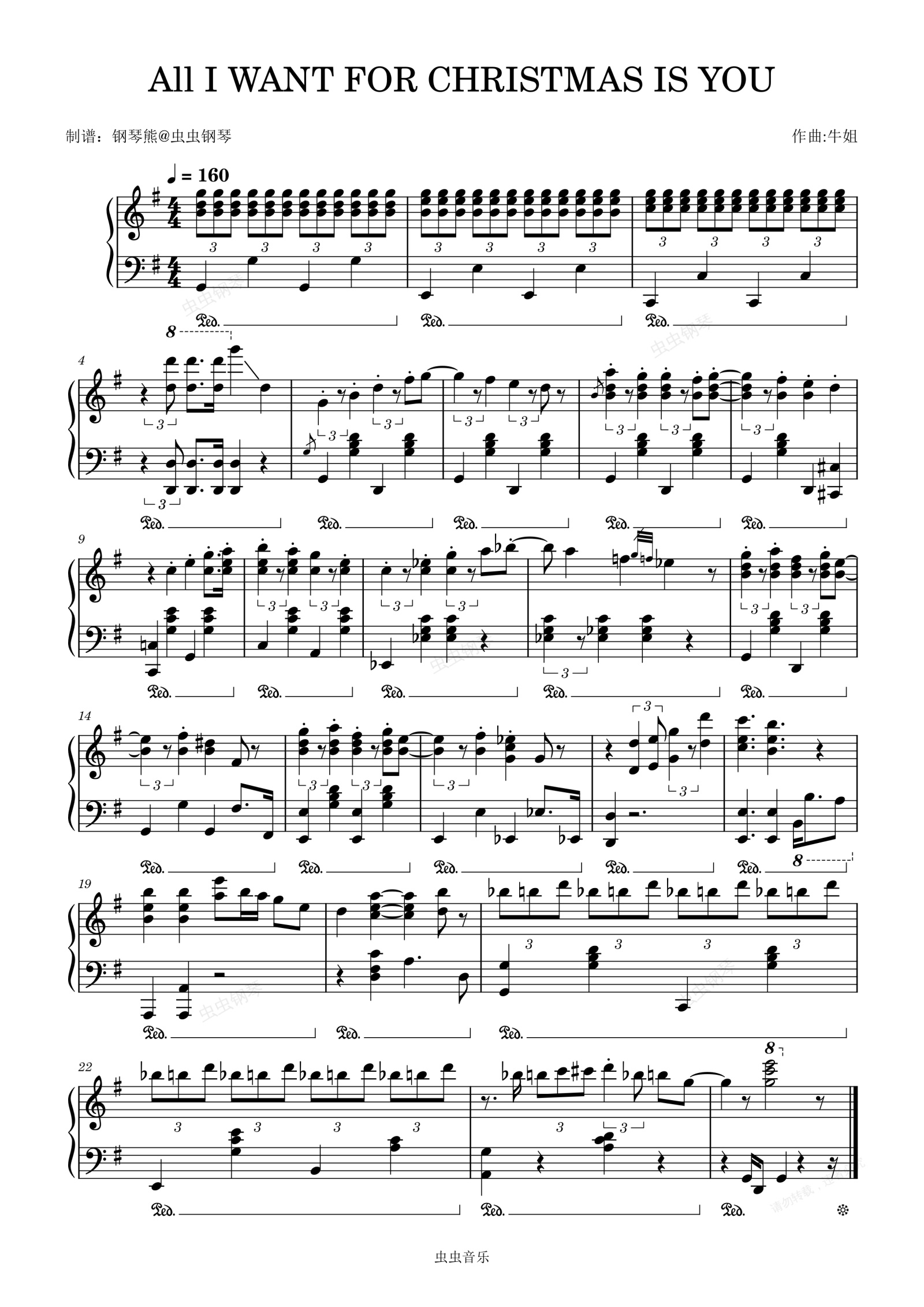钢琴谱:《ALL I WANT FOR CHRISTMAS IS YOU》爵士乐版~提前祝粉丝圣诞节快乐~喜欢谱子的朋友记得给谱子点收藏哦👇