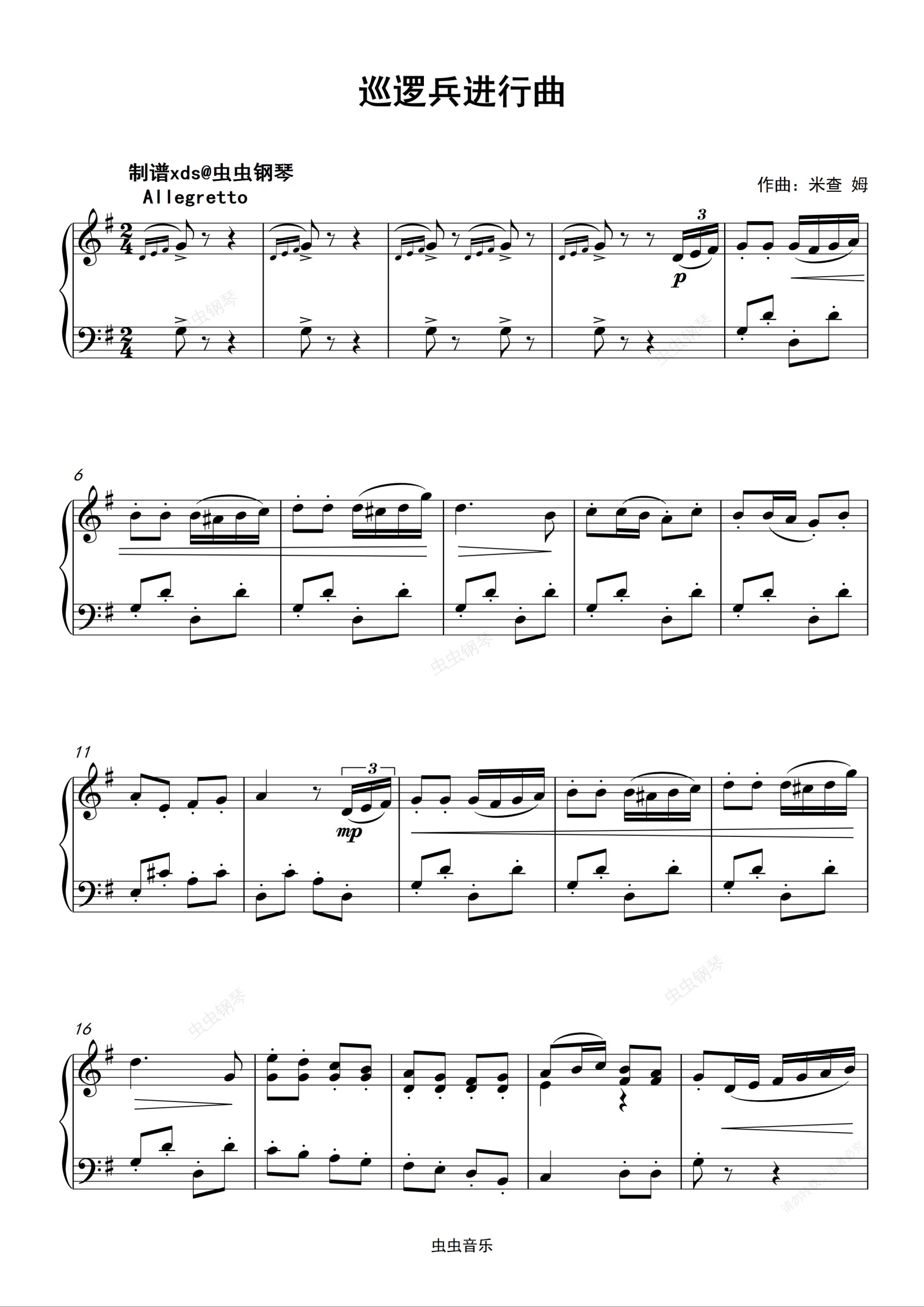 为了表现巡逻兵队伍由近而远的动态,演奏最后一段时通常逐渐减弱音量,用隐约可闻的鼓声和乐声,来表现巡逻兵队伍越走越远。