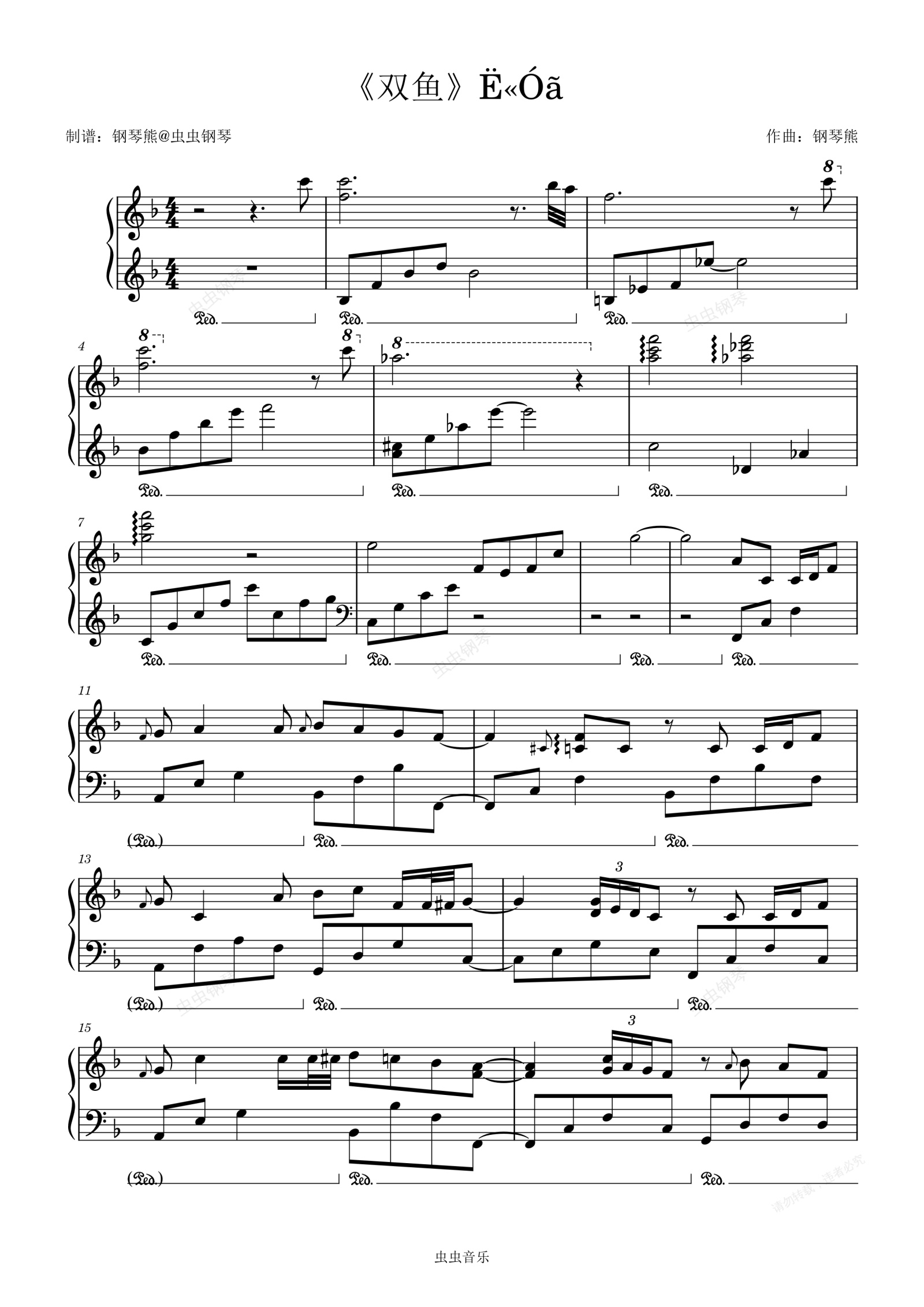 钢琴谱:超级好听《双鱼》《Ë«Óã 》钢琴完美版~寒冷的初雪听着最有感觉~喜欢的兄弟记得给谱子点收藏👇加关注哈👆啊~