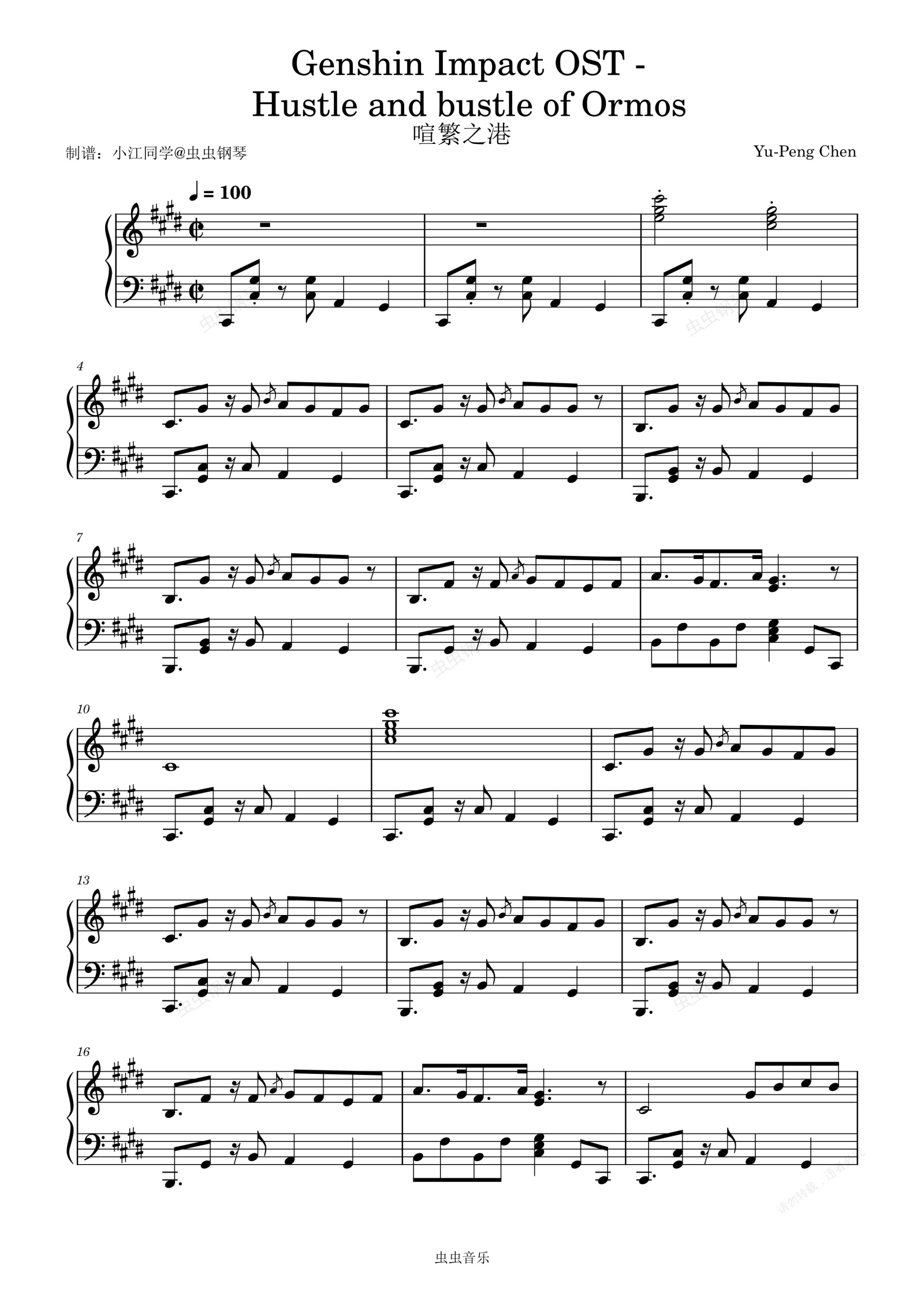 钢琴谱:喧繁之港《原神》Hustle and bustle of Ormos