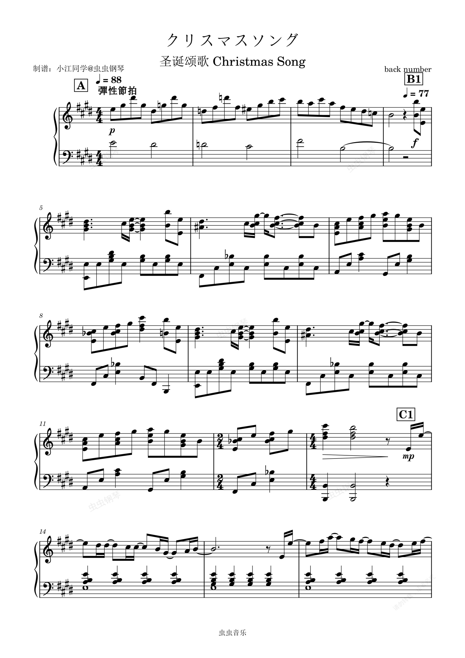钢琴谱:クリスマスソング 圣诞颂歌 Christmas Song