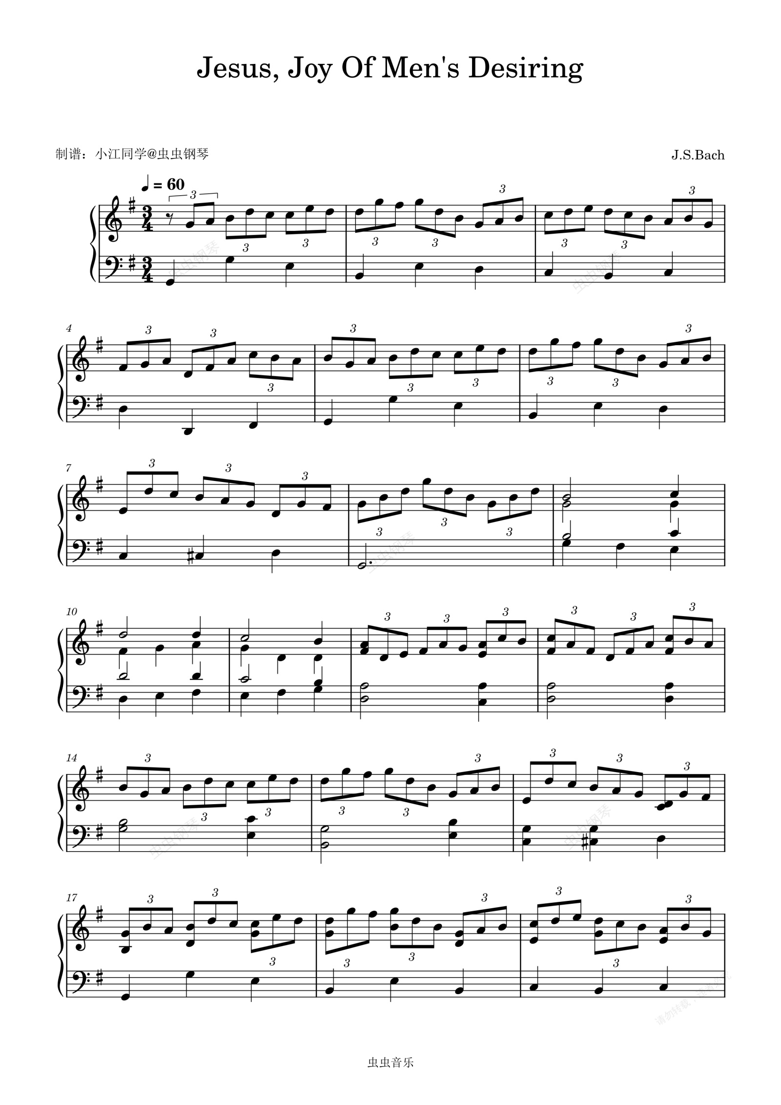 钢琴谱:Jesus, Joy Of Men's Desiring 巴赫
