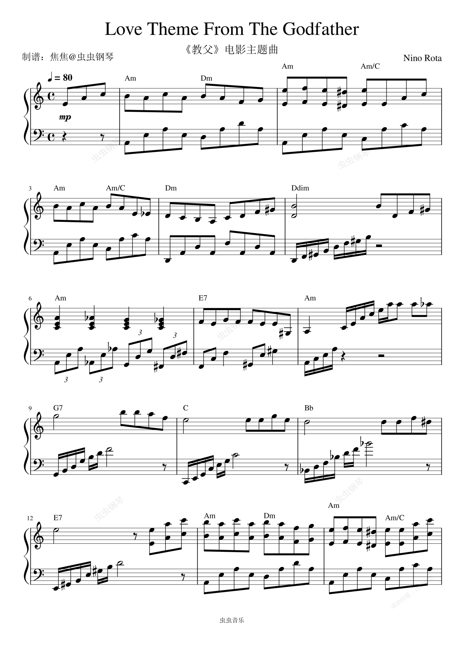 钢琴谱:Love Theme From The Godfather