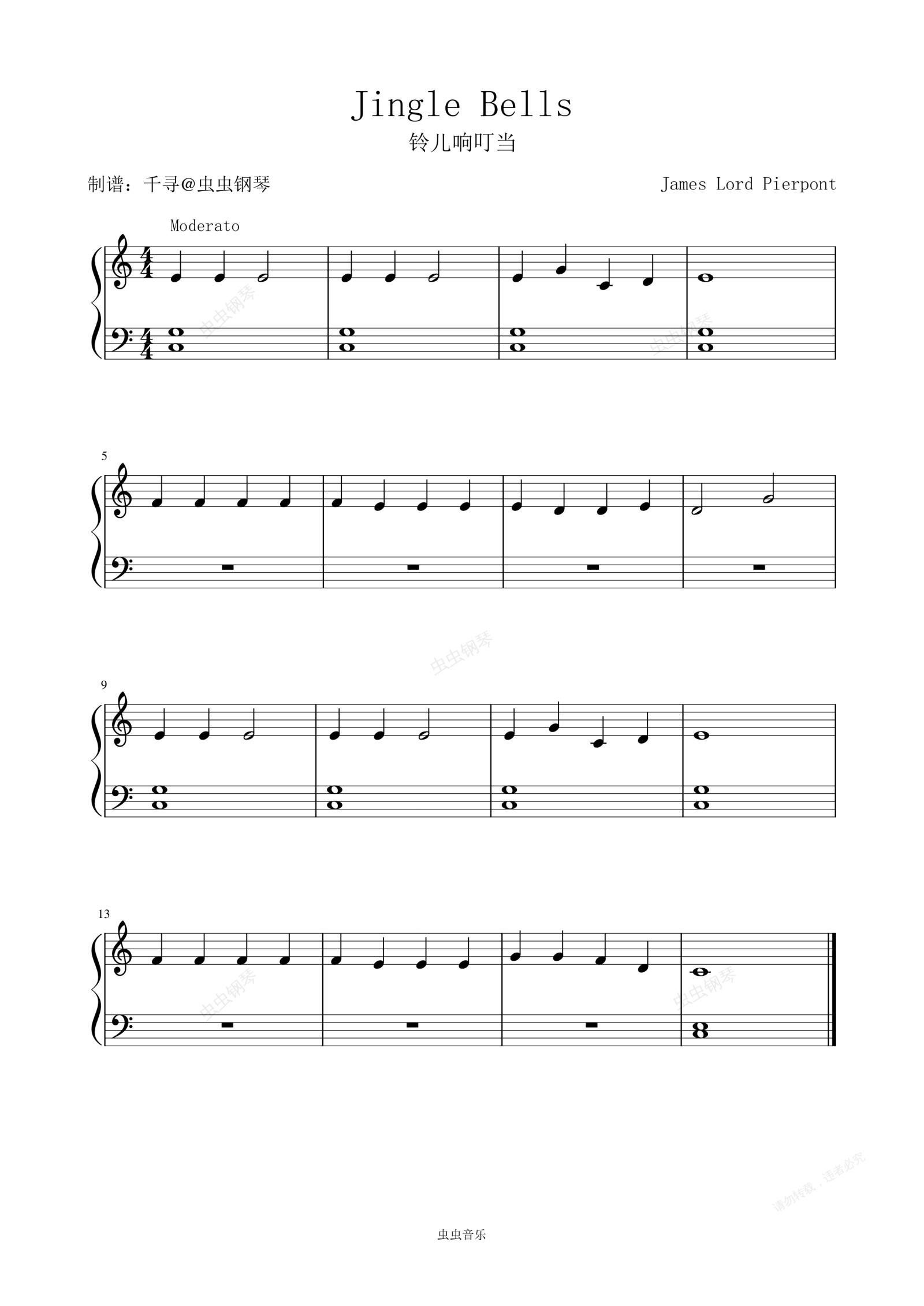 钢琴谱:铃儿响叮当 Jingle Bells 【简易版】