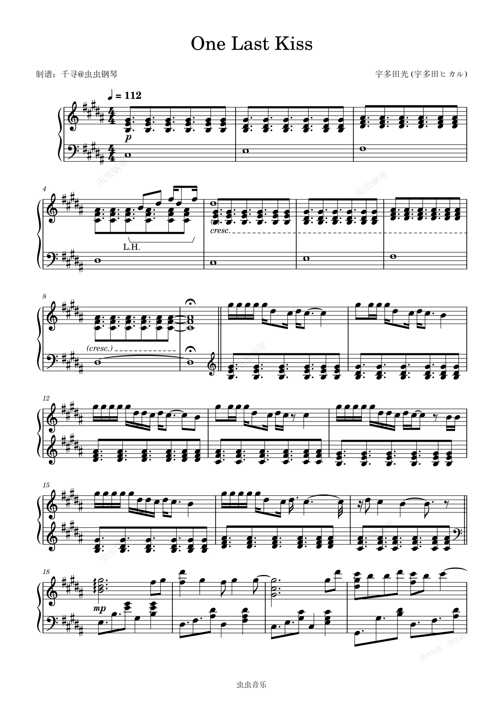 钢琴谱:One Last Kiss - 宇多田光 (宇多田ヒカル)