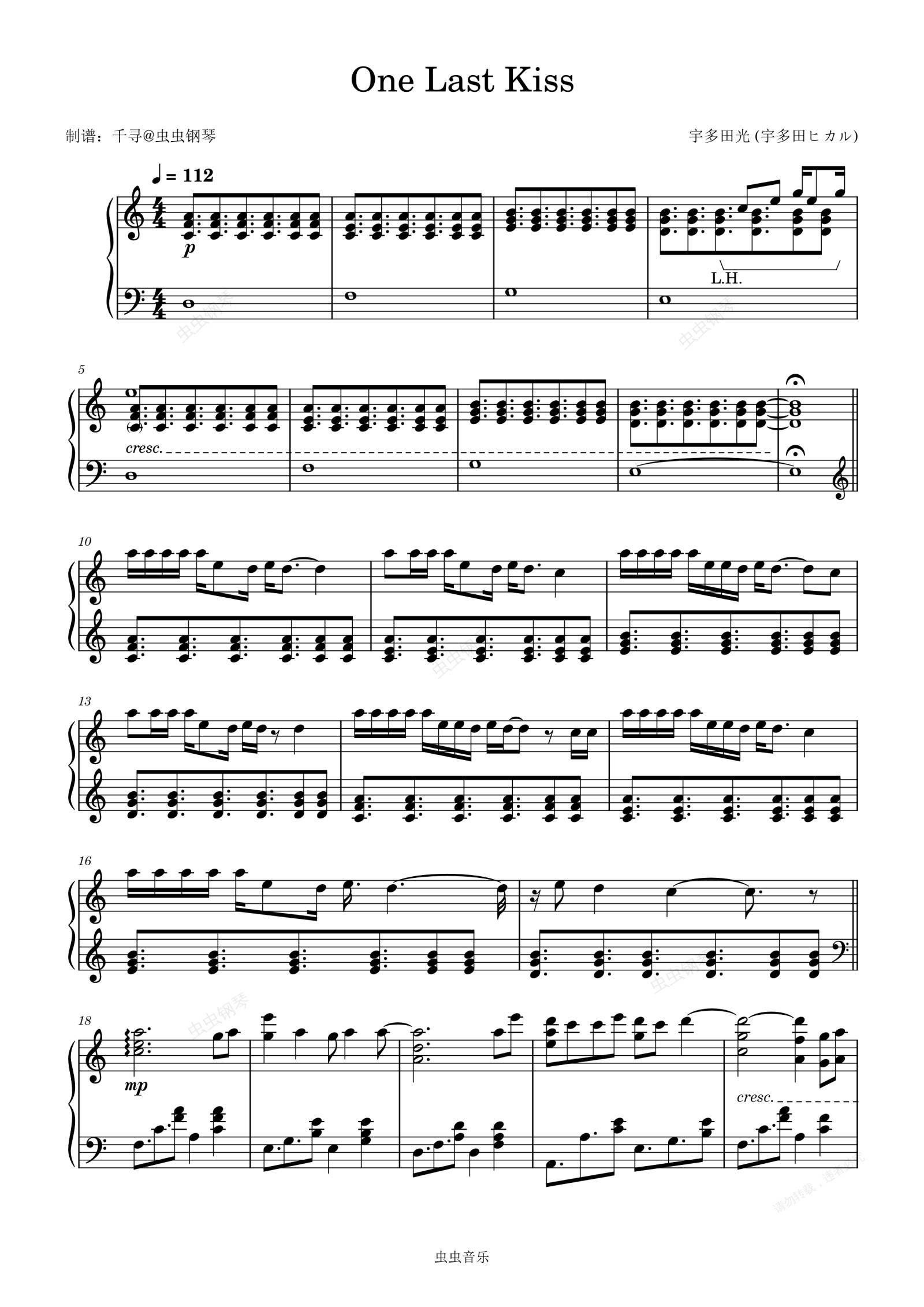 钢琴谱:One Last Kiss - 宇多田光 (宇多田ヒカル)