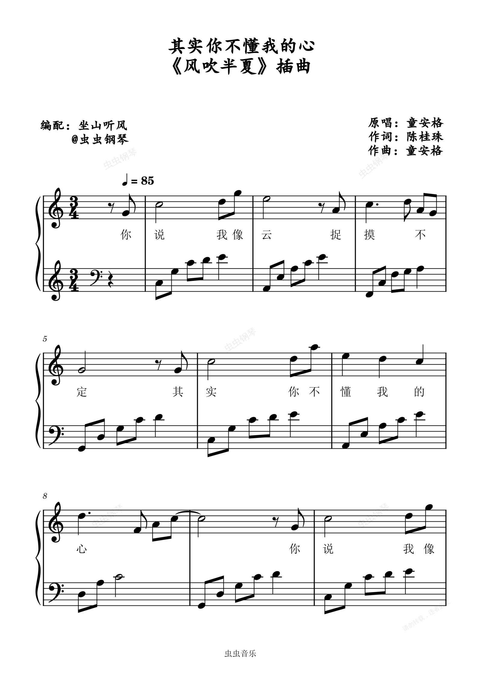 钢琴谱:其实你不懂我的心——《风吹半夏》插曲