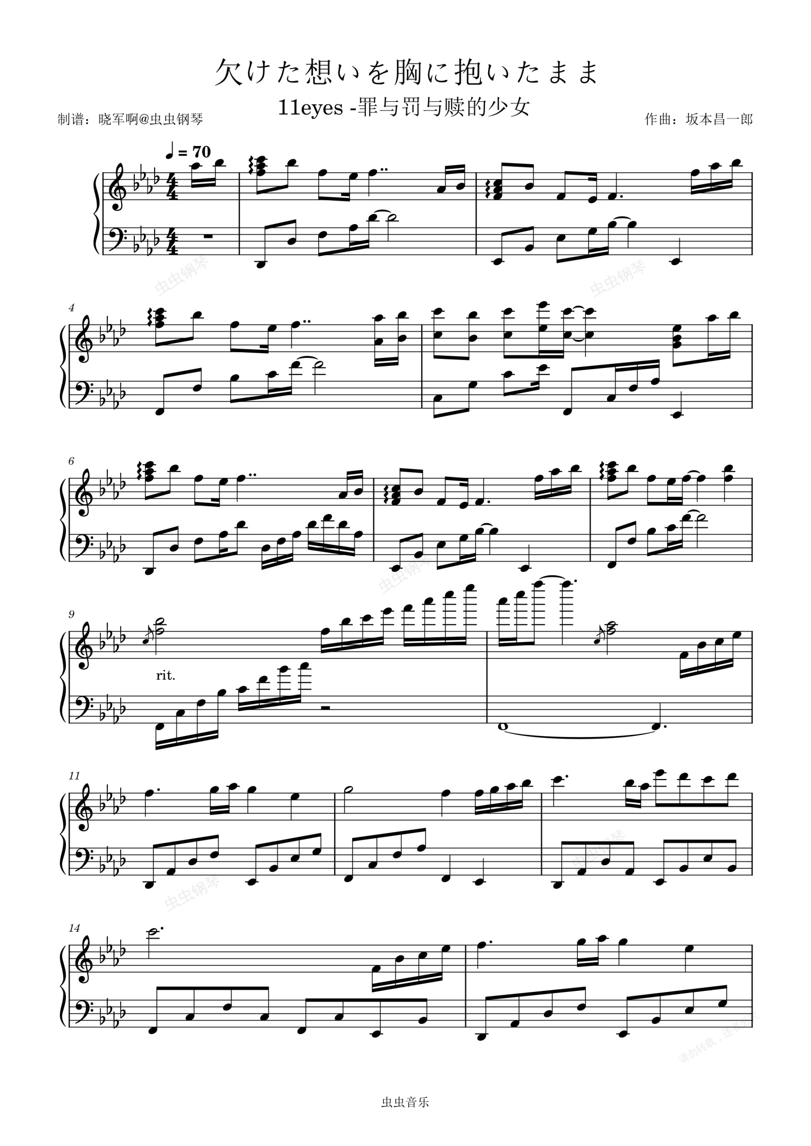 钢琴谱:【11eyes】欠けた想いを胸に抱いたまま
