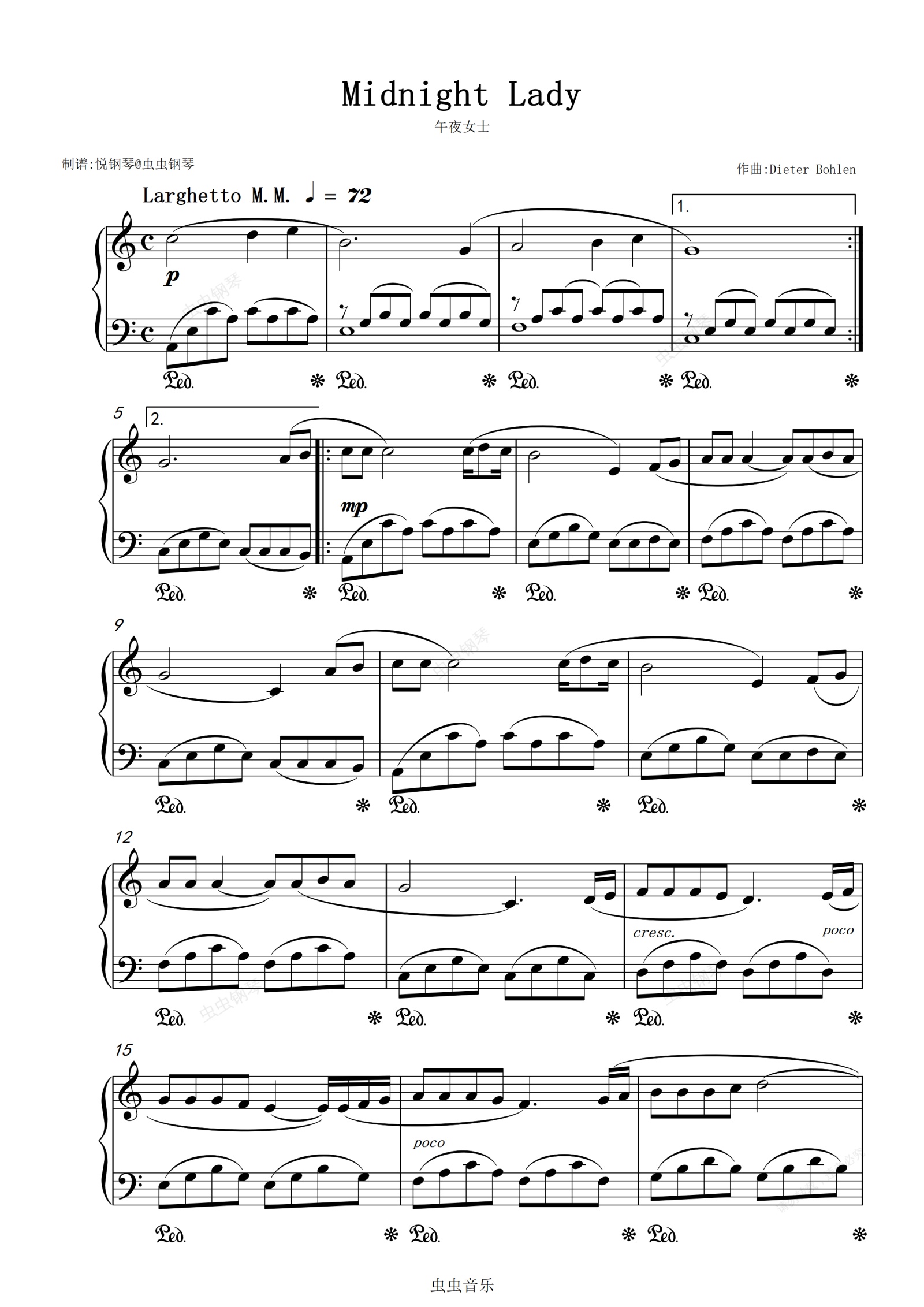 钢琴谱:午夜女士//Midnight Lady【治愈钢琴小曲】