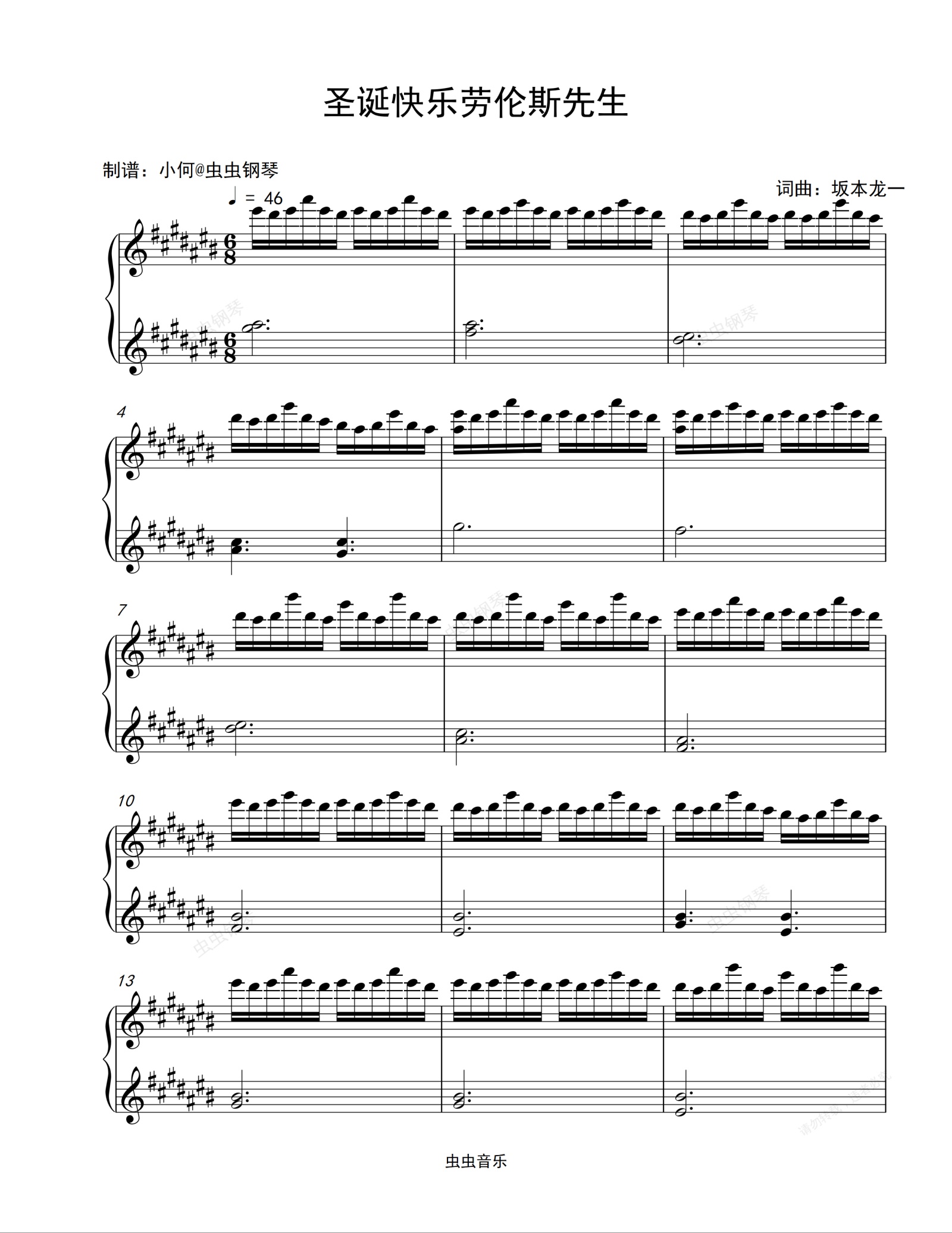 钢琴谱:圣诞快乐劳伦斯先生-Merry Christmas Mr.Lawrence-坂本龙一 - 完整版