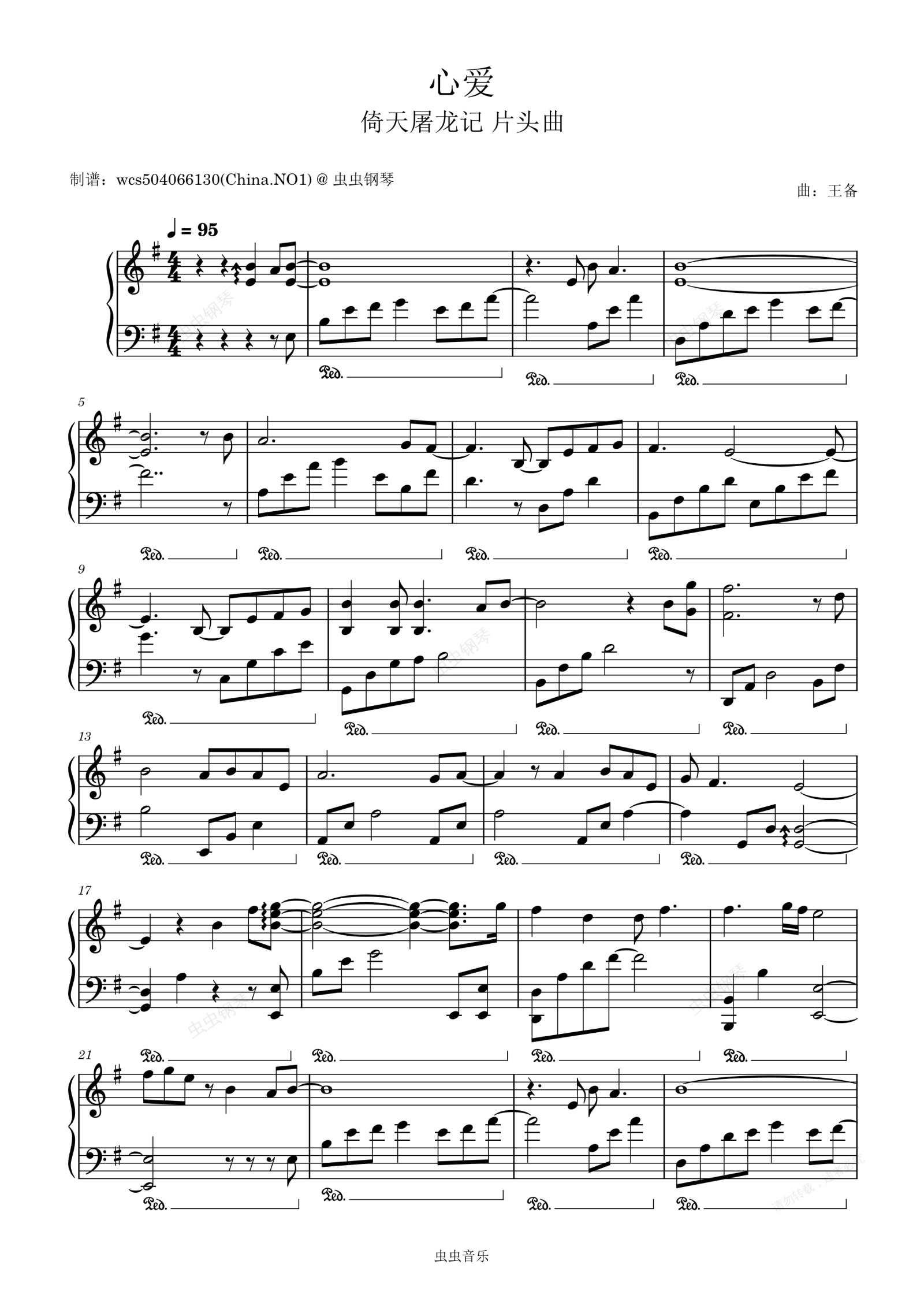 钢琴谱:《心爱》-倚天屠龙记-片头曲-又名《醉春风》
