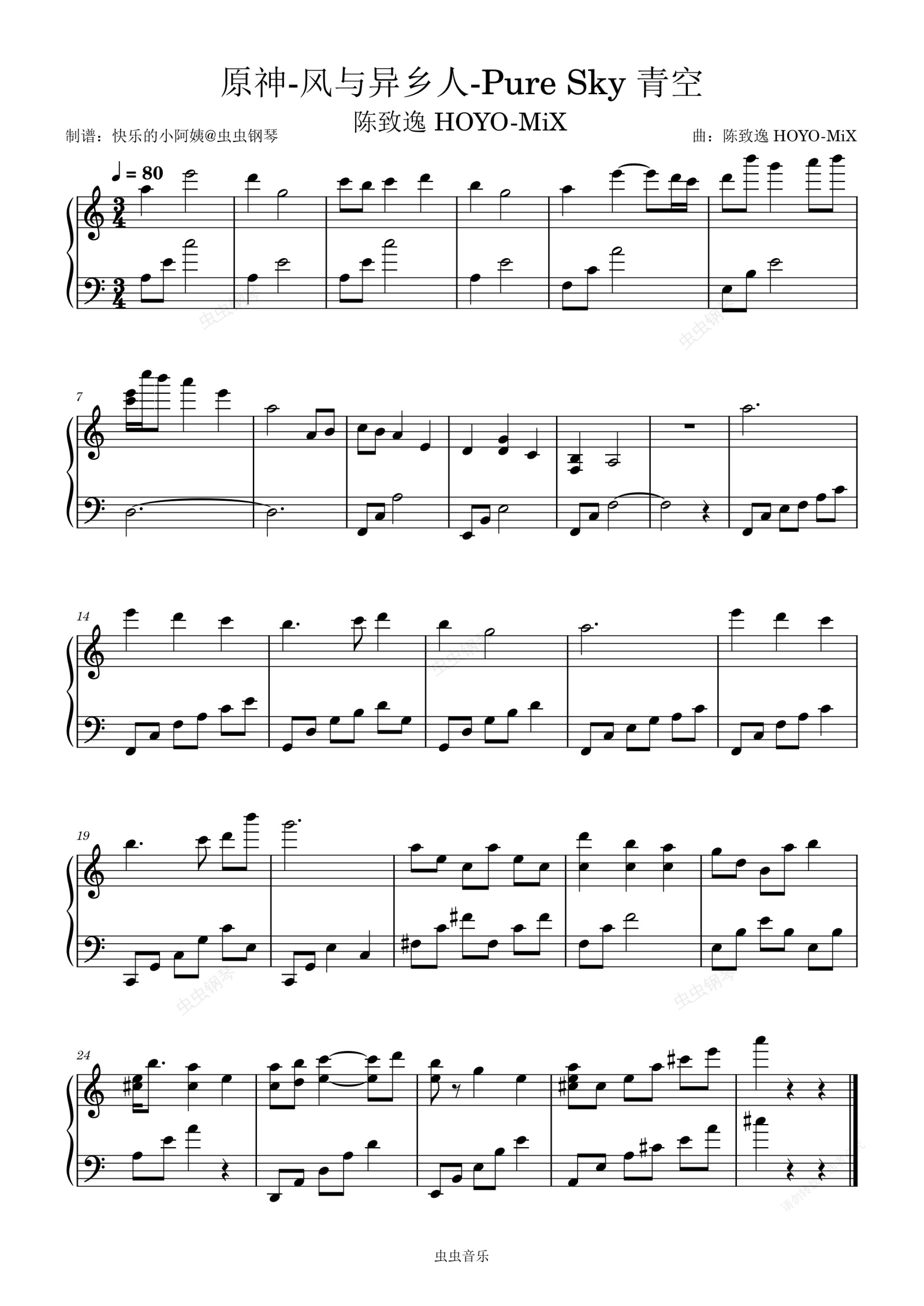 钢琴谱:原神-风与异乡人-Pure Sky 青空