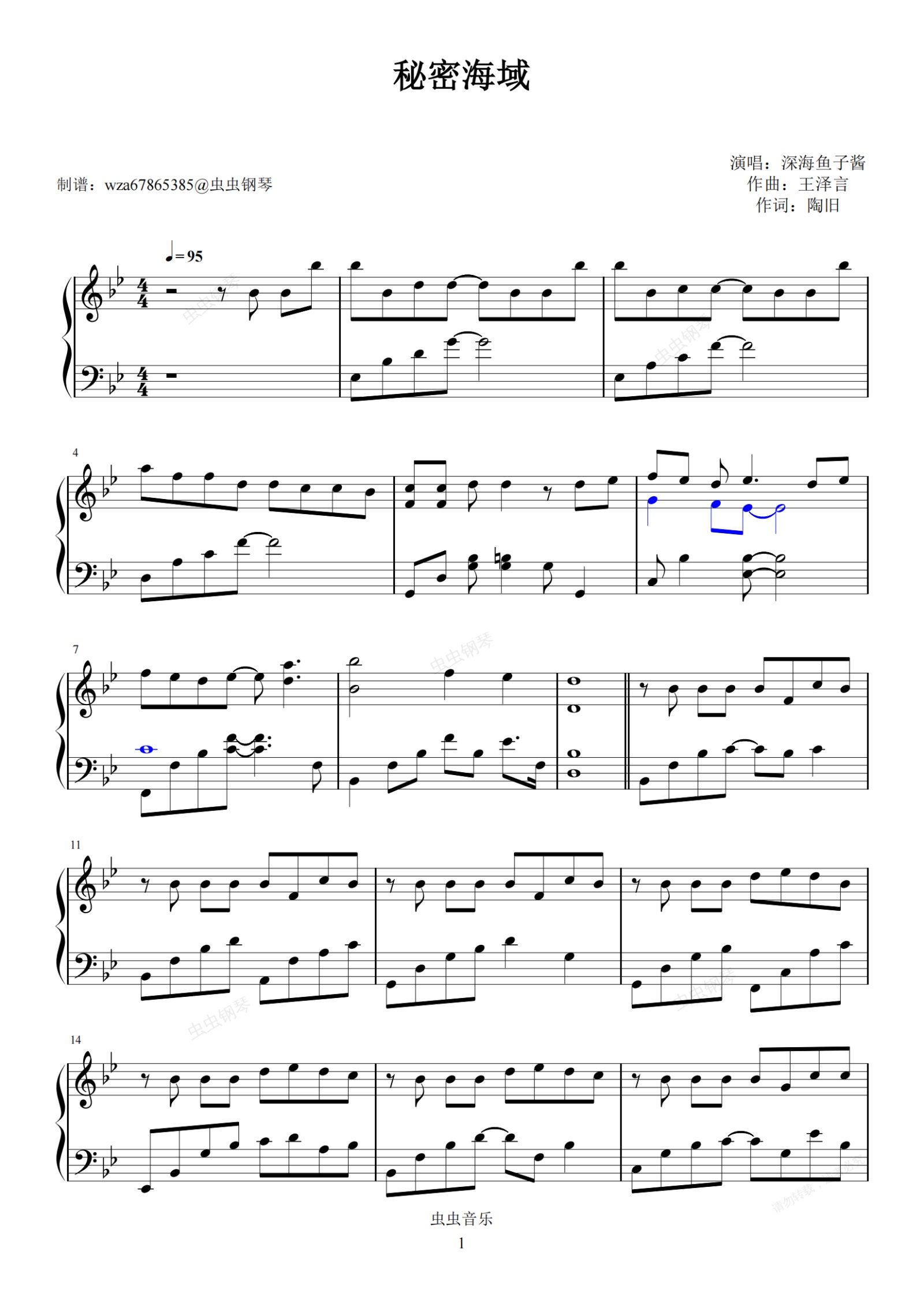 钢琴谱:秘密海域