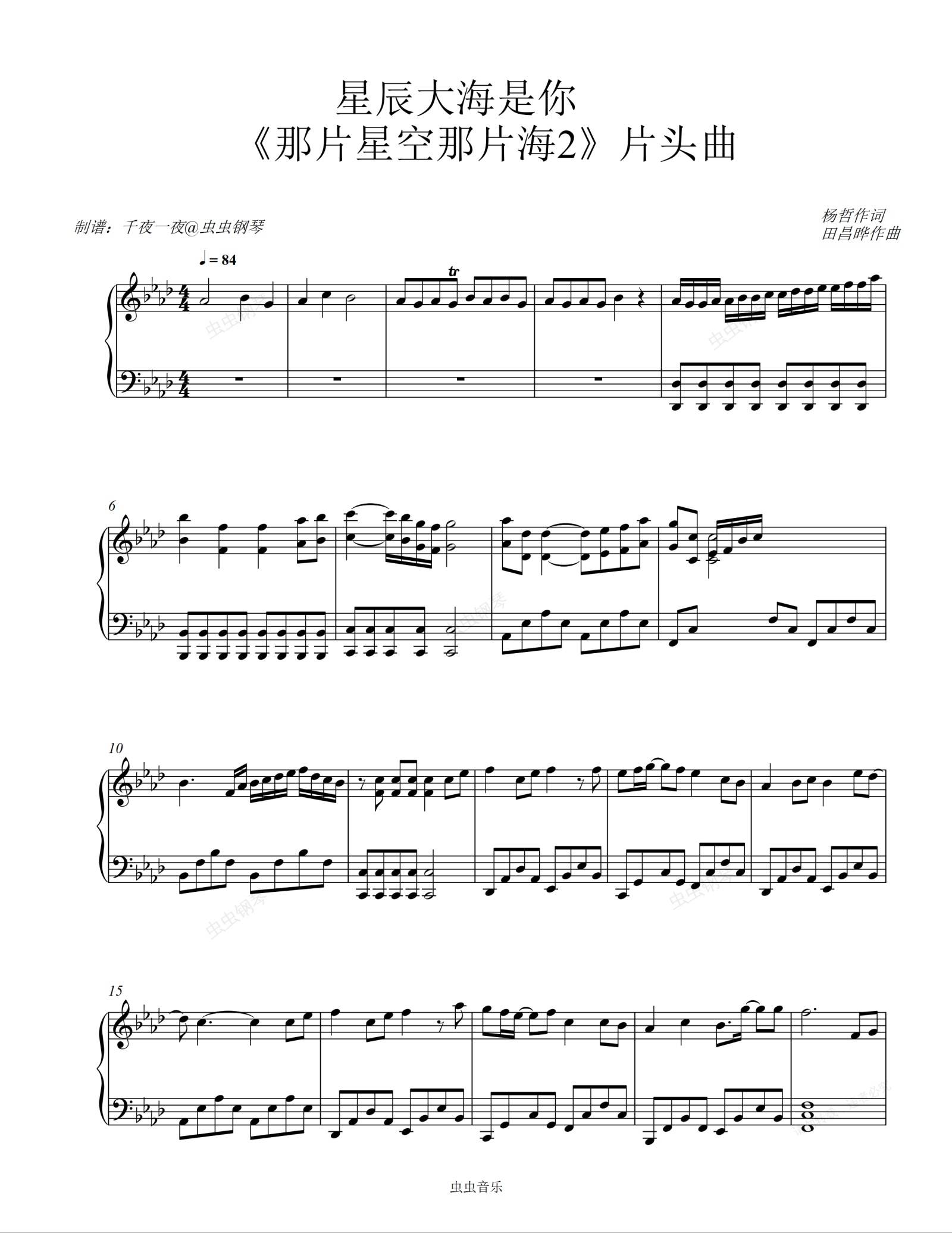 钢琴谱:魏晨-星辰大海是你_《那片星空那片海》电视剧插曲_好看好听音乐
