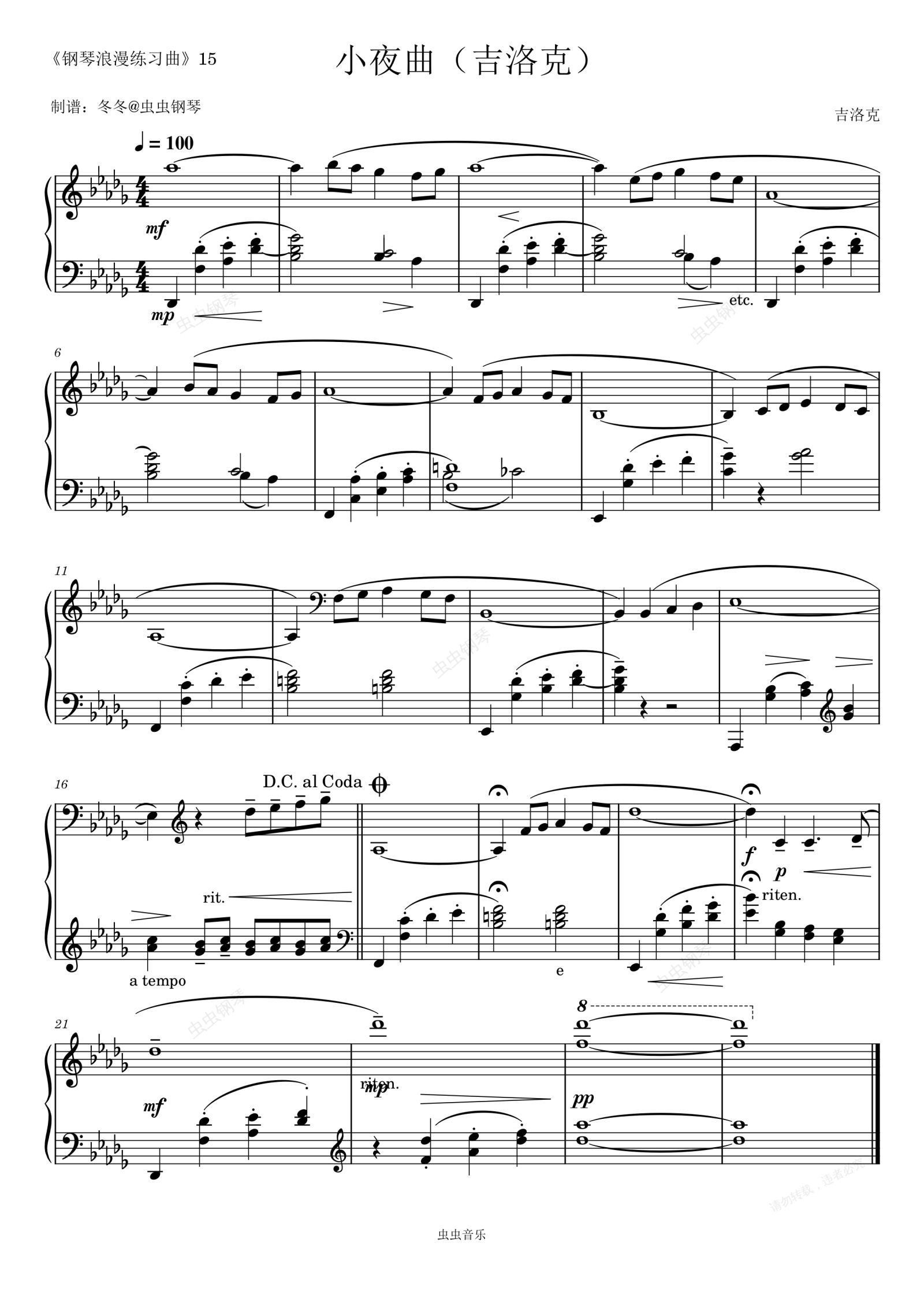 钢琴谱:小夜曲