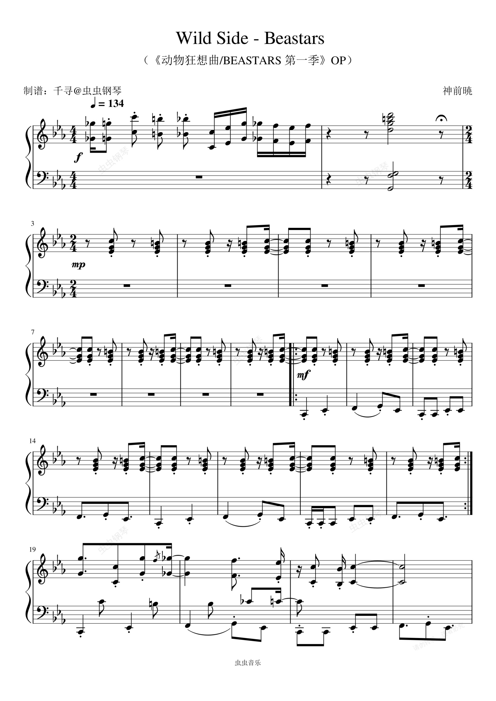 钢琴谱:Wild Side - Beastars (《动物狂想曲/BEASTARS 第一季》OP)