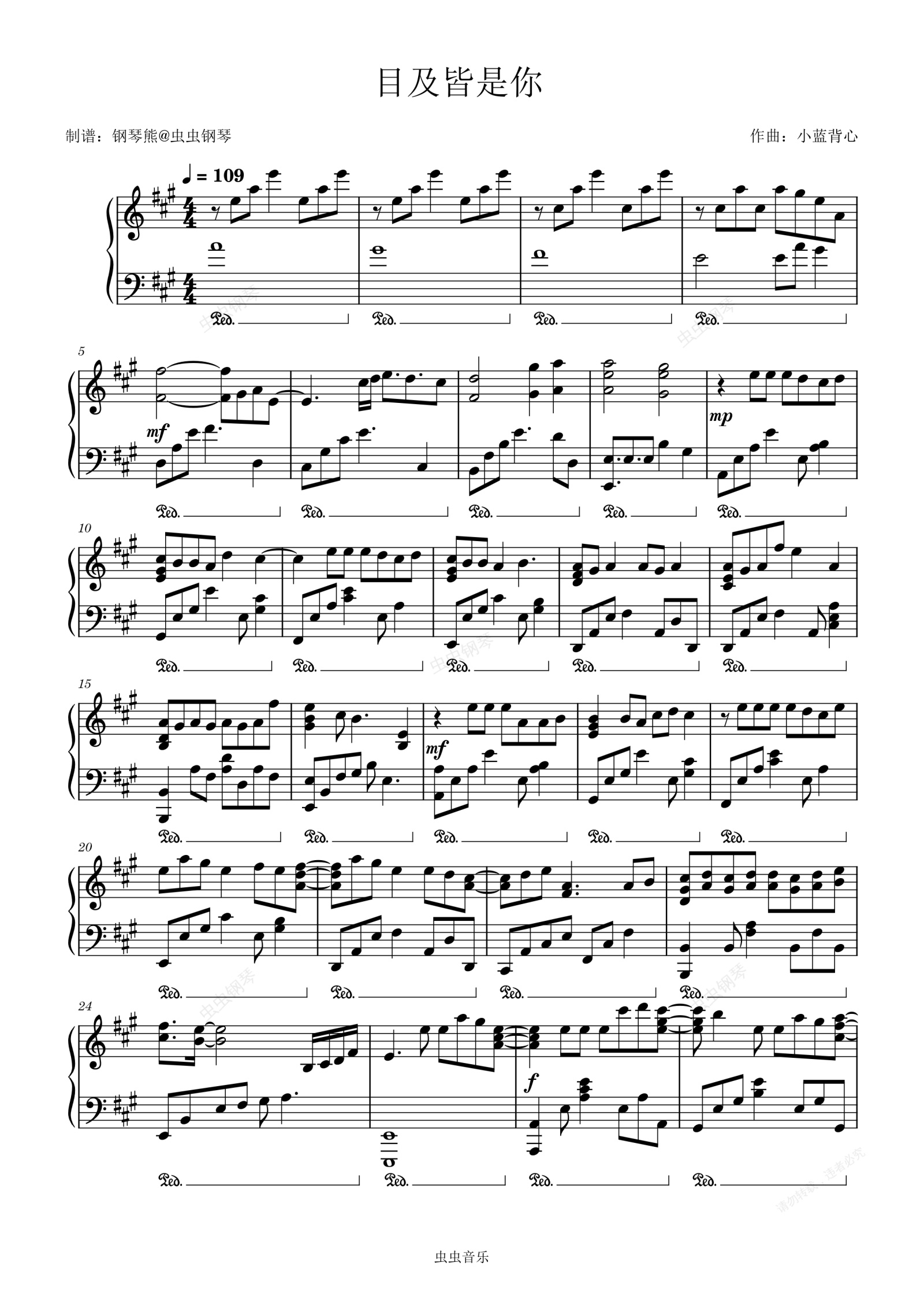 钢琴谱:《目及皆是你》编曲不易喜欢的兄弟朋友记得给谱子点收藏哦👇👇👇日更up喜欢小熊的记得点关注哦~👆👆👆