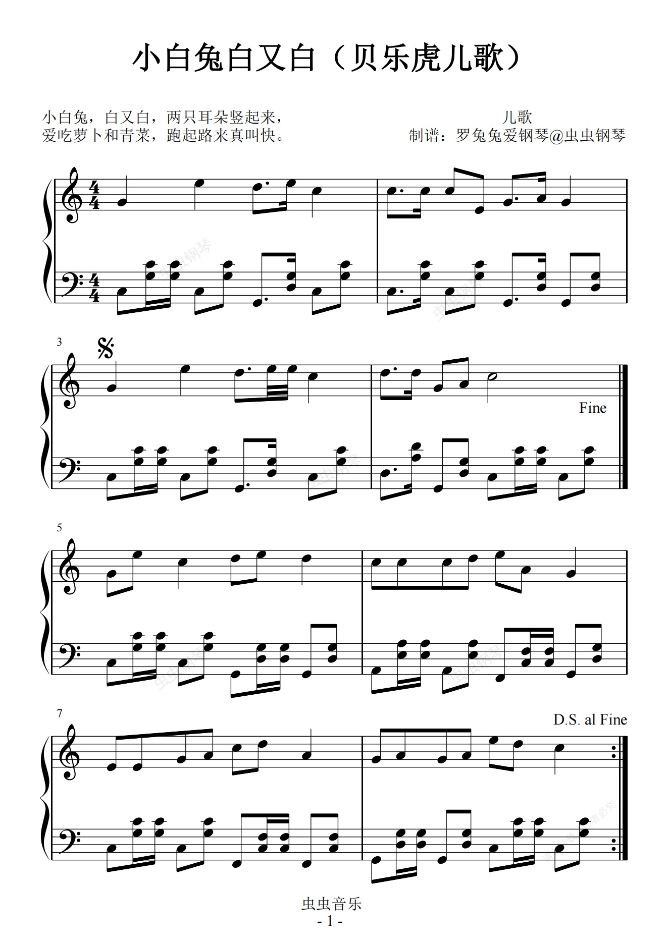 钢琴谱:小白兔白又白(贝乐虎儿歌)