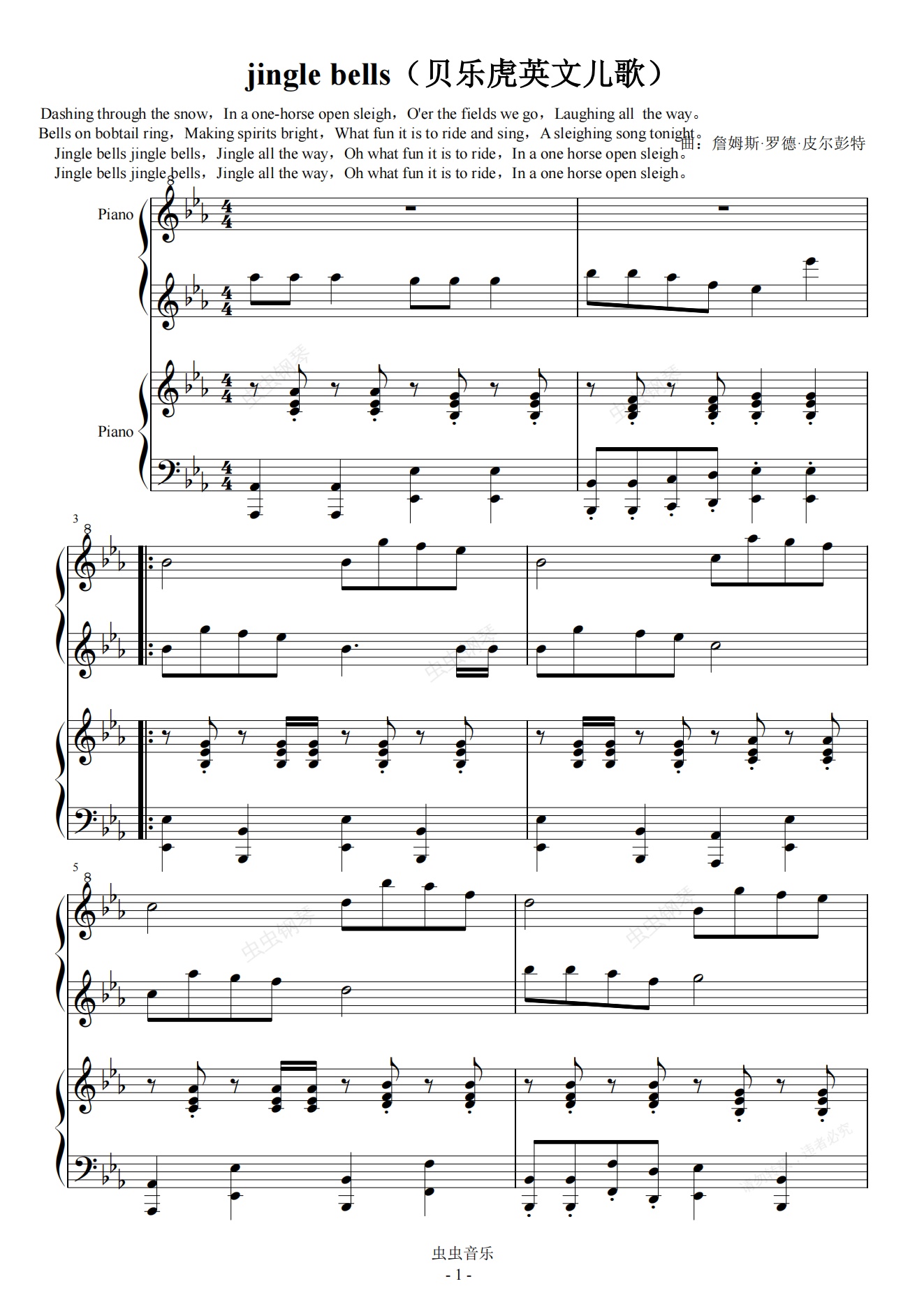 钢琴谱:jingle bells(贝乐虎英文儿歌)
