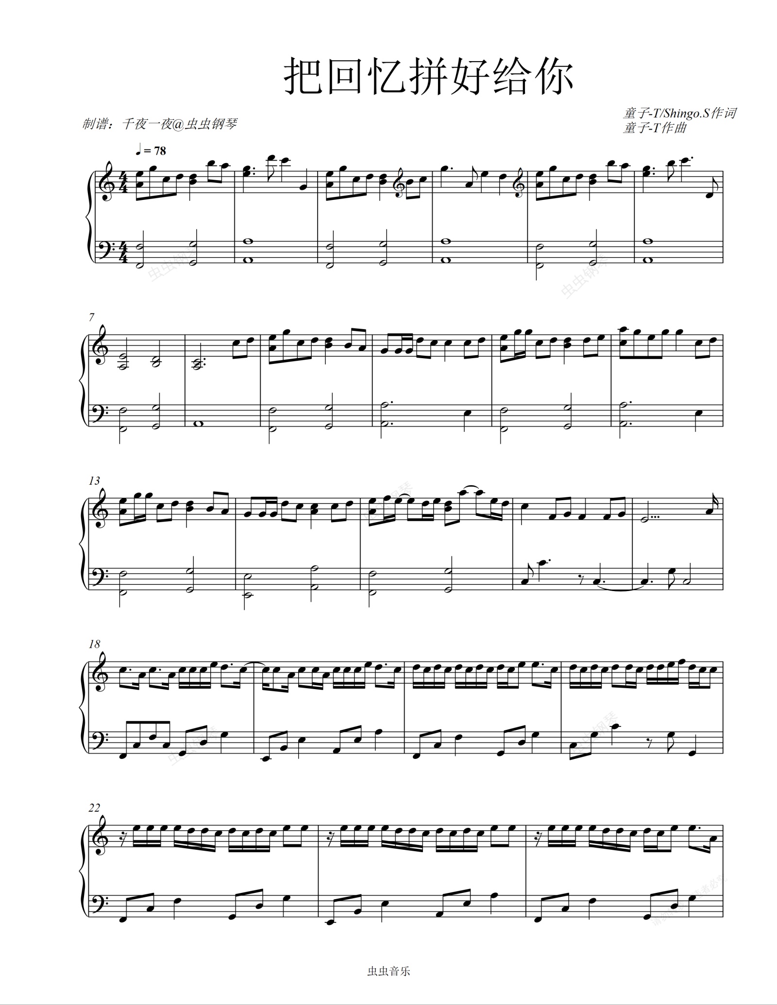 钢琴谱:王贰浪《把回忆拼好给你》钢琴版