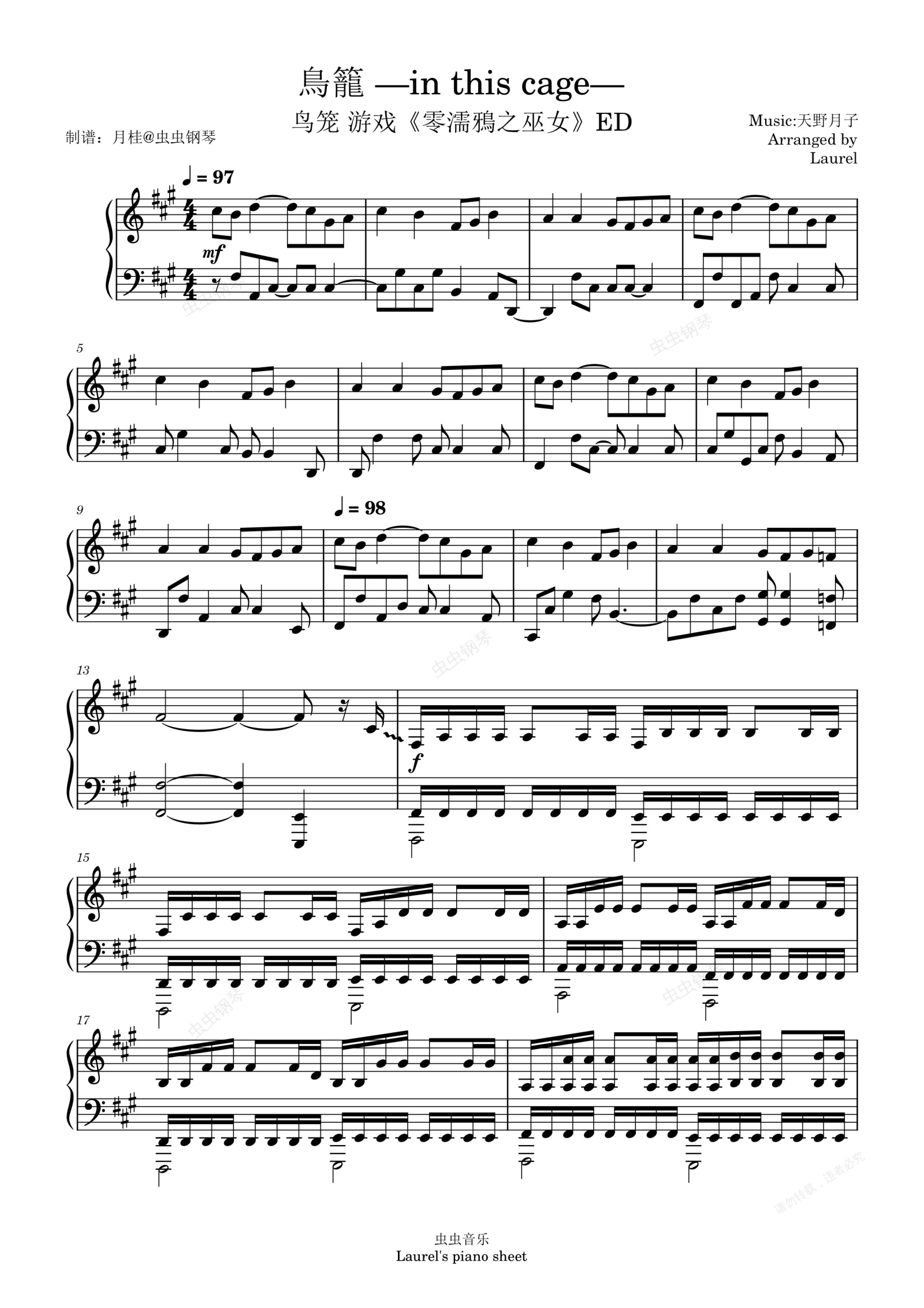 《鸟笼》(In This Cage)是日本女歌手天野月演唱的一首歌,也是零系列恐怖游戏《零:濡鸦之巫女》的主题曲之一。
