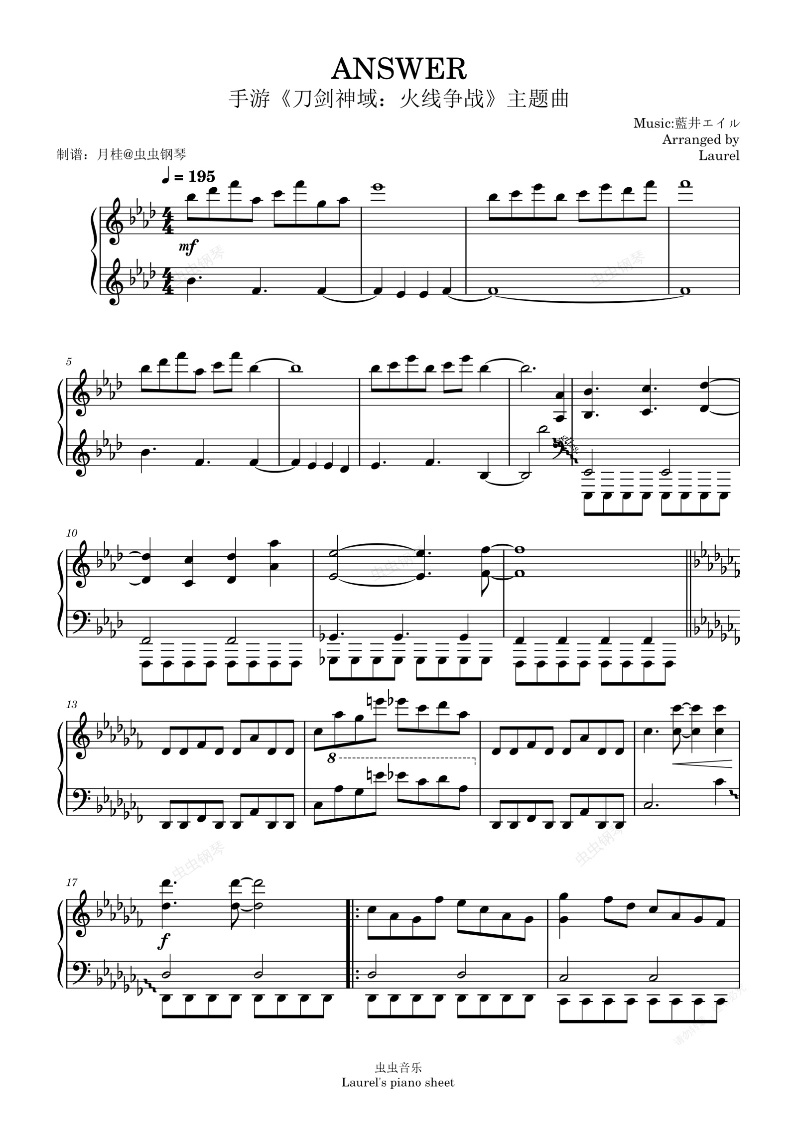 钢琴谱:ANSWER-手游《刀剑神域:火线争战》主题曲完整版