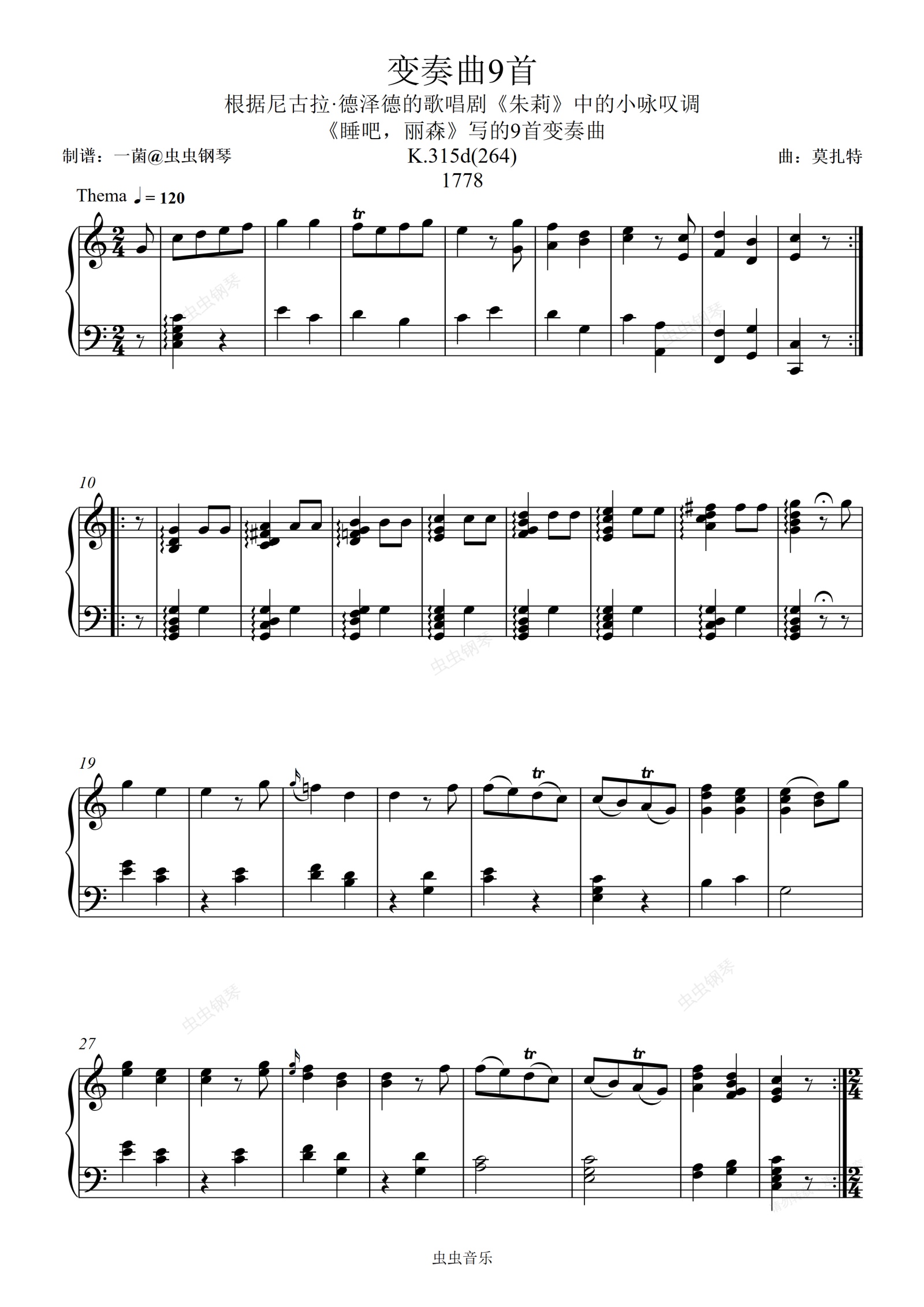 钢琴谱:莫扎特 K.264/K264-睡吧,丽森