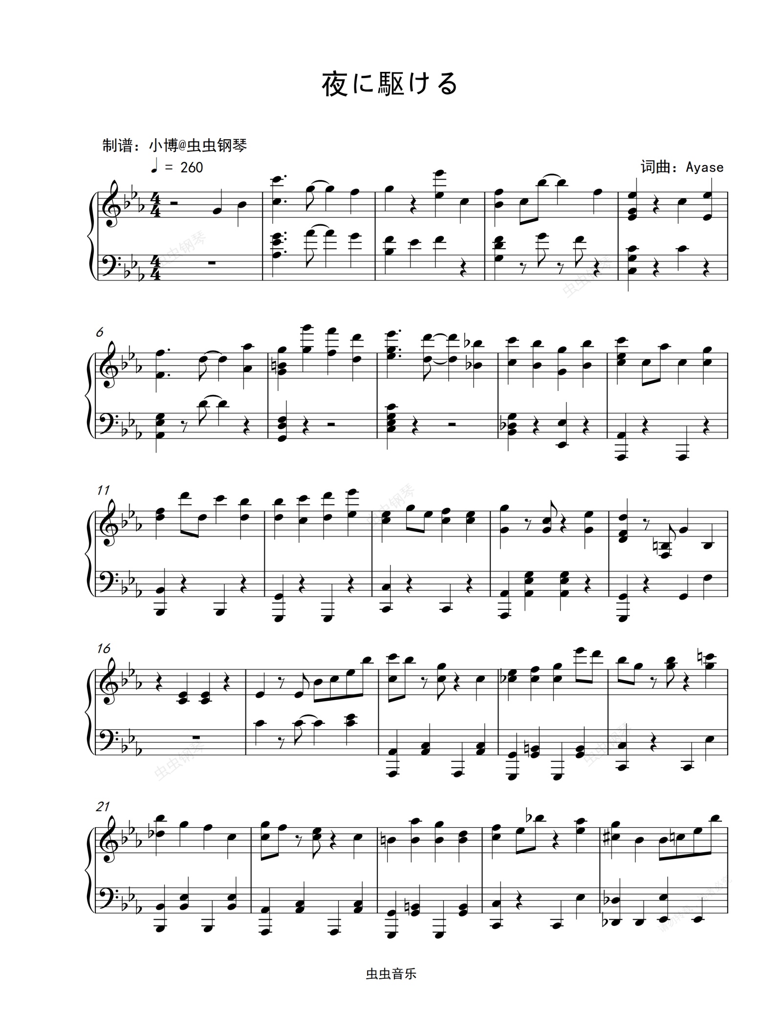 钢琴谱:夜に駆ける(奔向黑夜)-YOASOBI Eb调