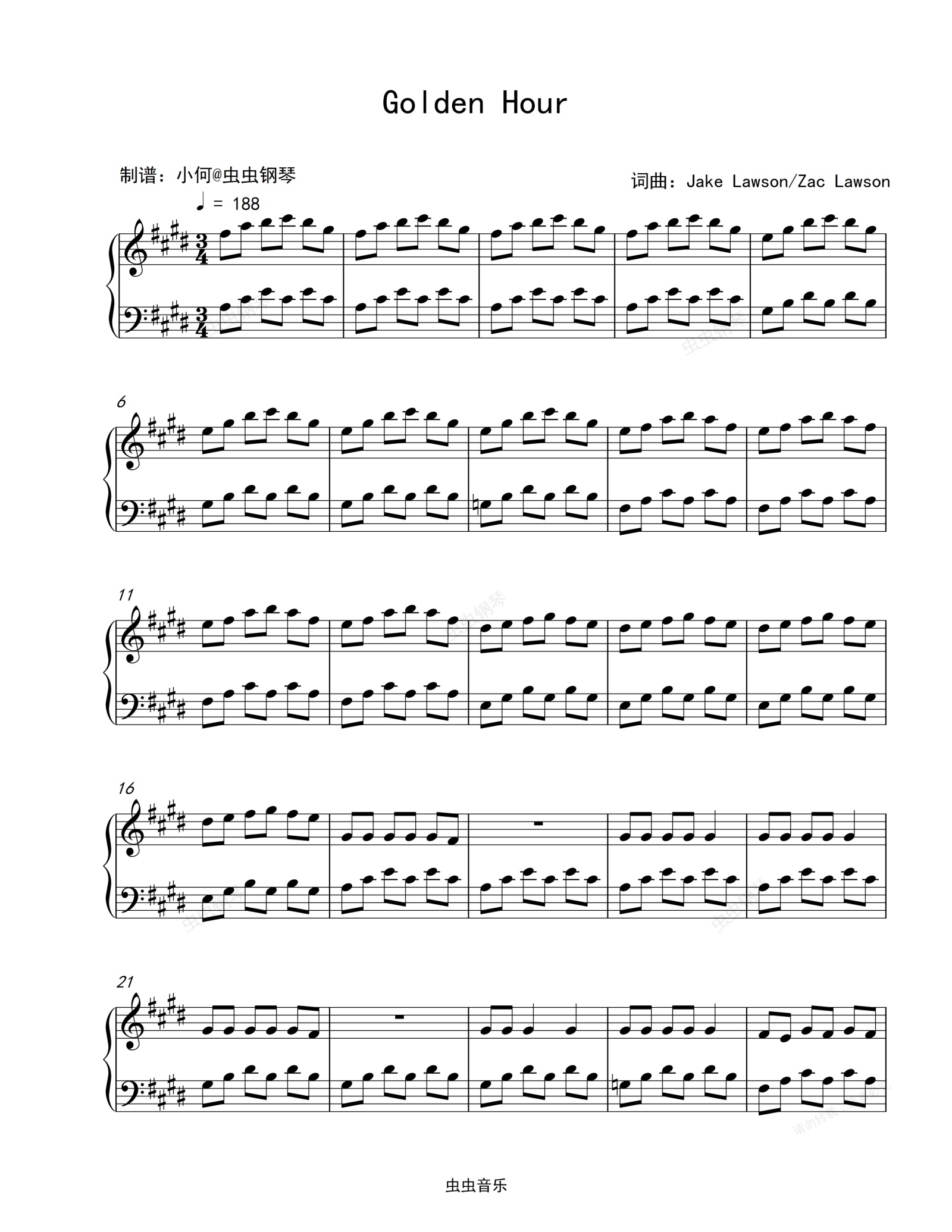 钢琴谱:Golden Hour-JVKE