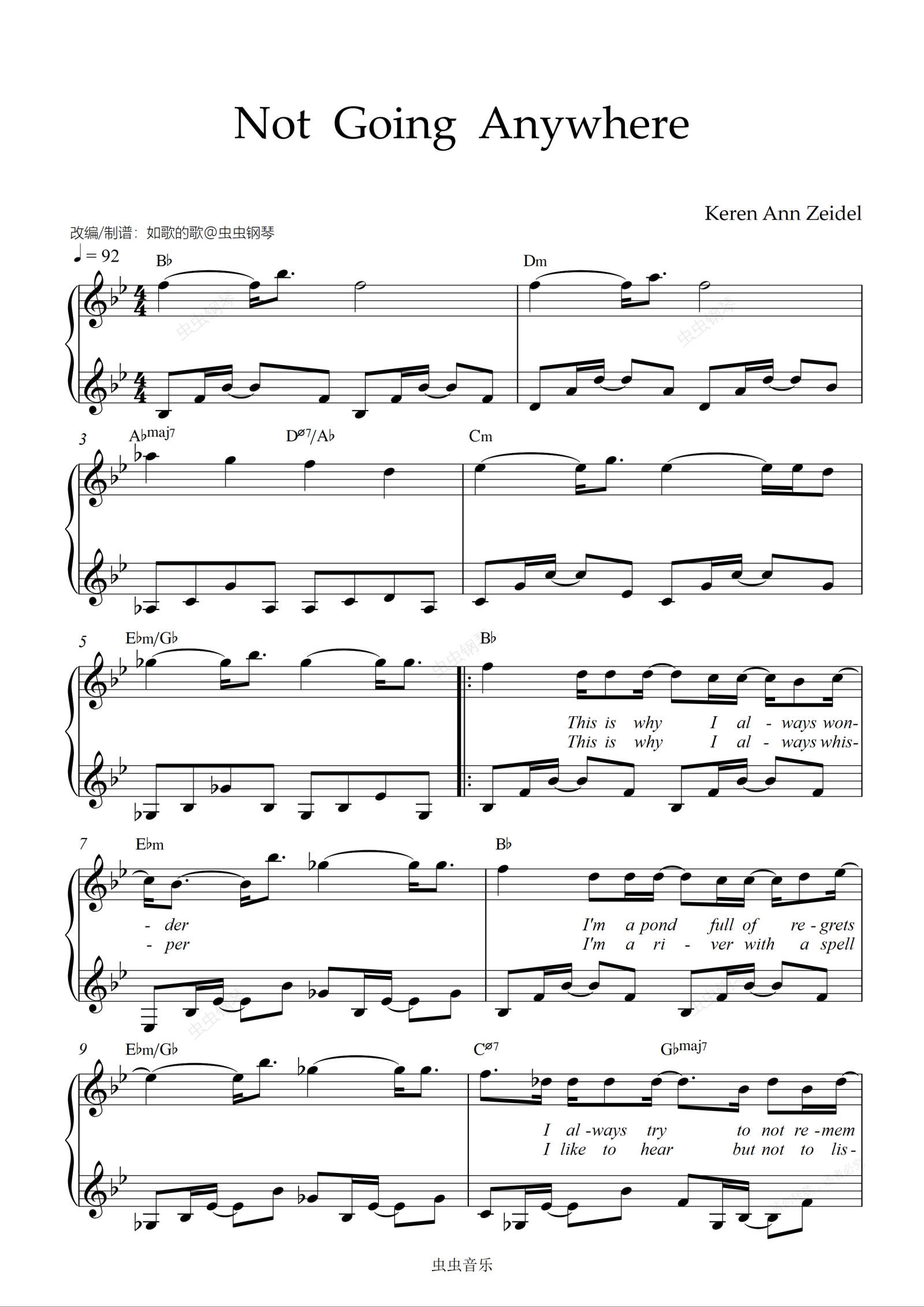 钢琴谱:Not Going Anywhere-Keren Ann可弹唱