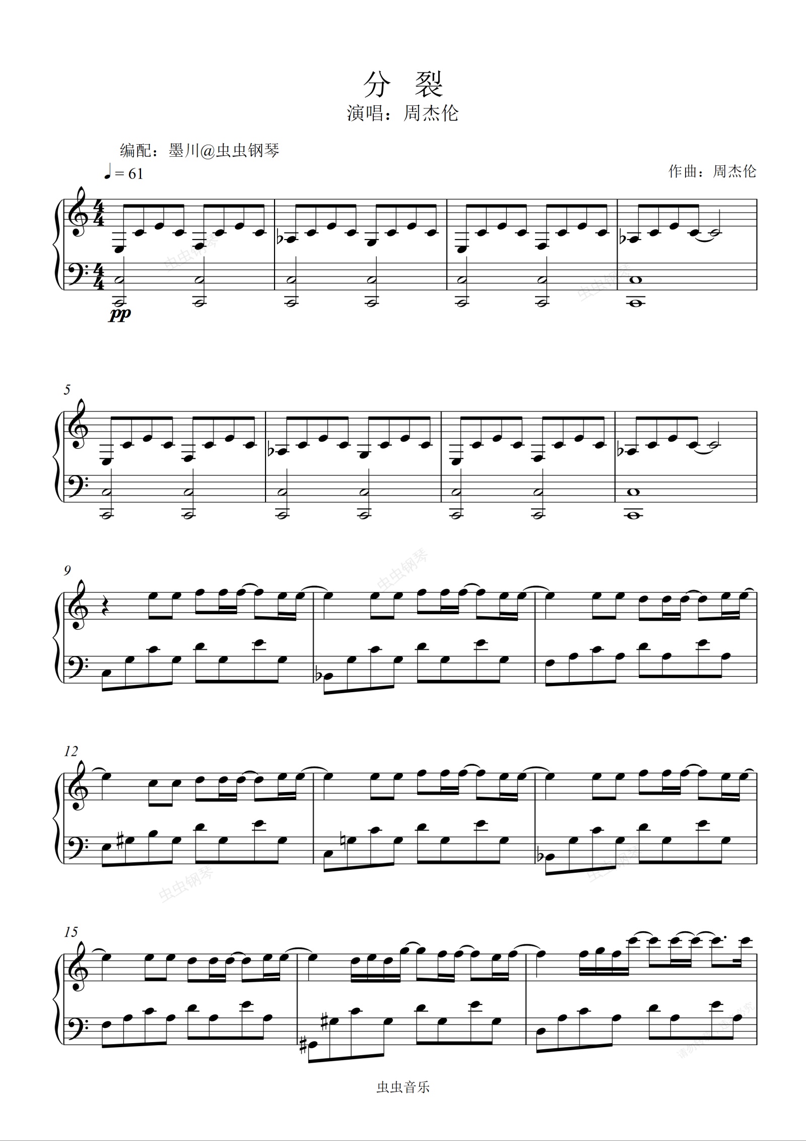 钢琴谱:分裂—周杰伦—C调编配