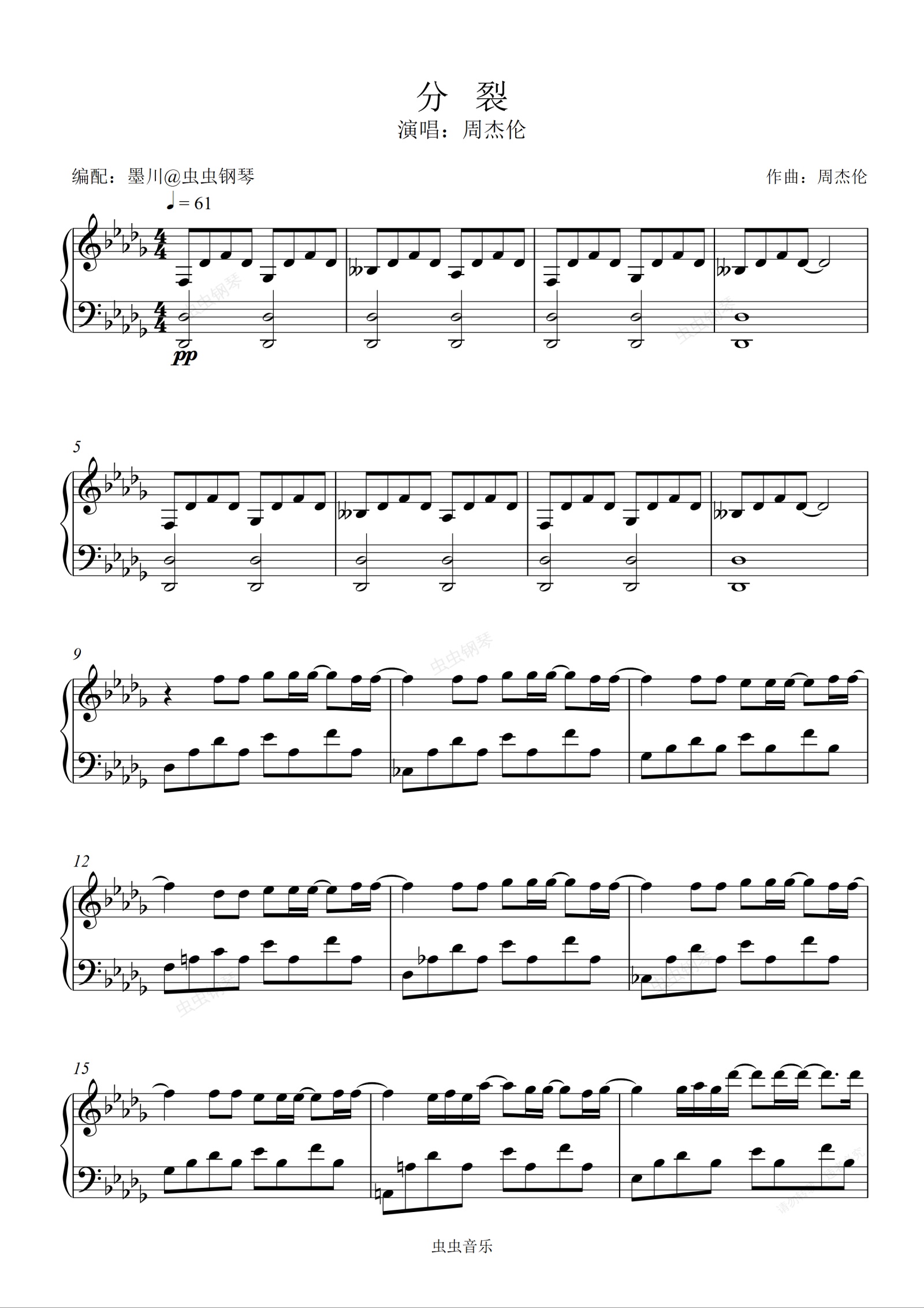 钢琴谱:分裂—周杰伦—原调降D调编配