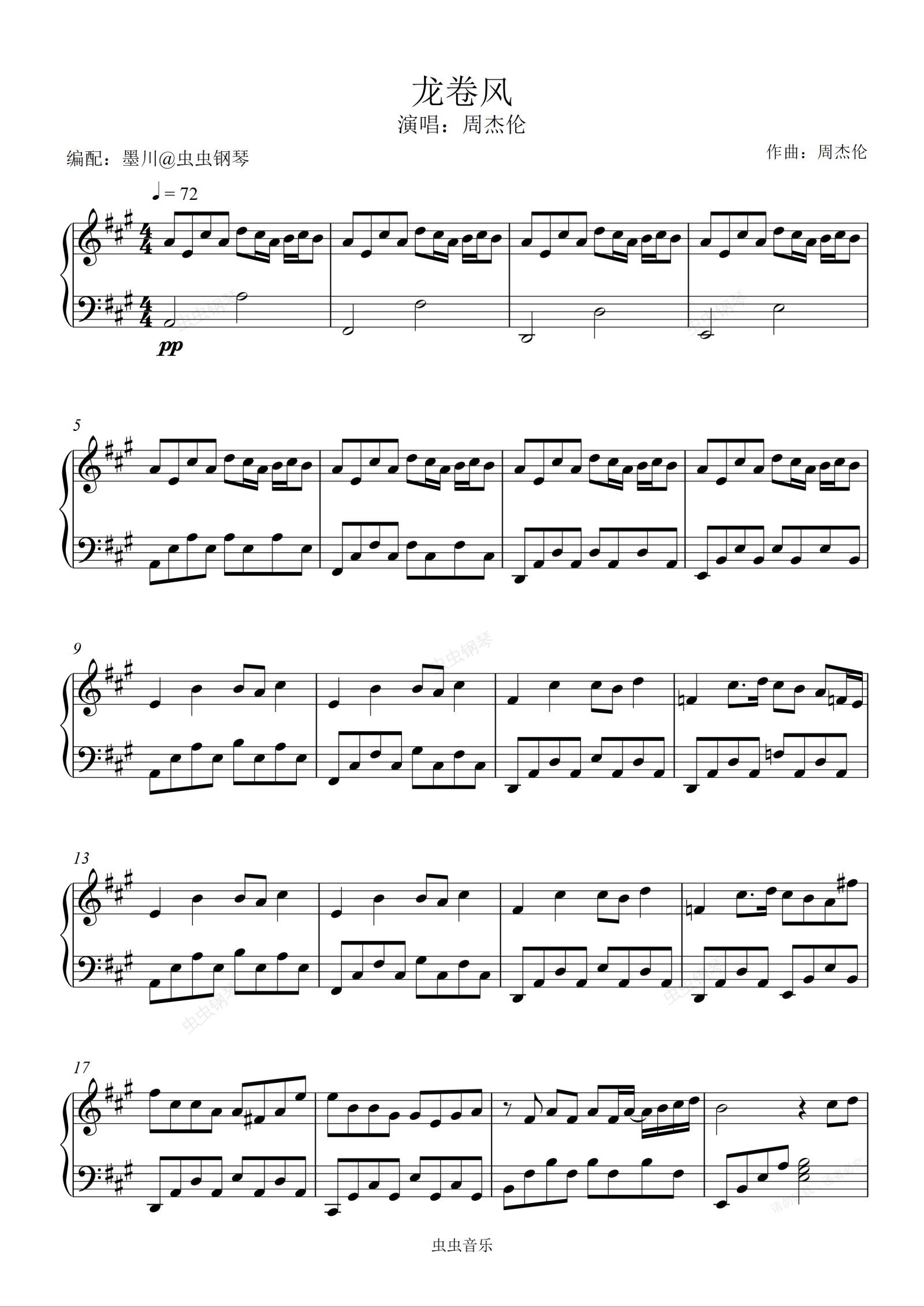 钢琴谱:龙卷风—周杰伦—原调A调编配