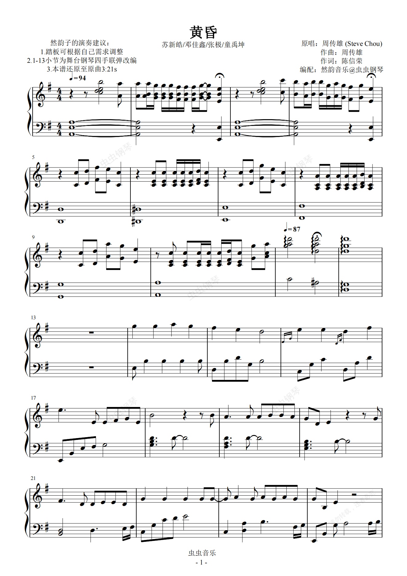 钢琴谱:【原调】黄昏-TF家族 完美独奏版  苏新皓/邓佳鑫/张极/童禹坤