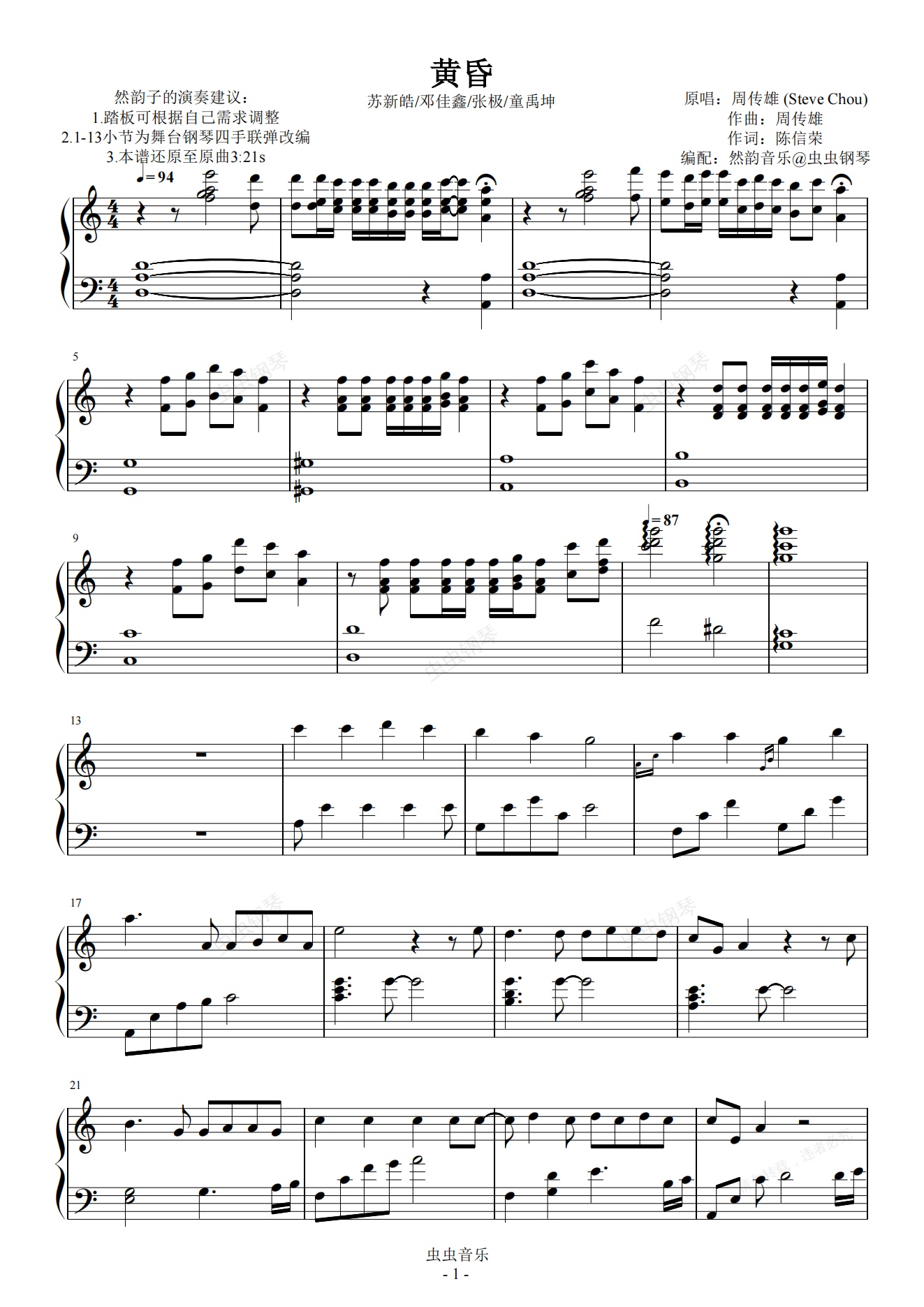 钢琴谱:【C调】黄昏-TF家族 完美独奏版 苏新皓/邓佳鑫/张极/童禹坤