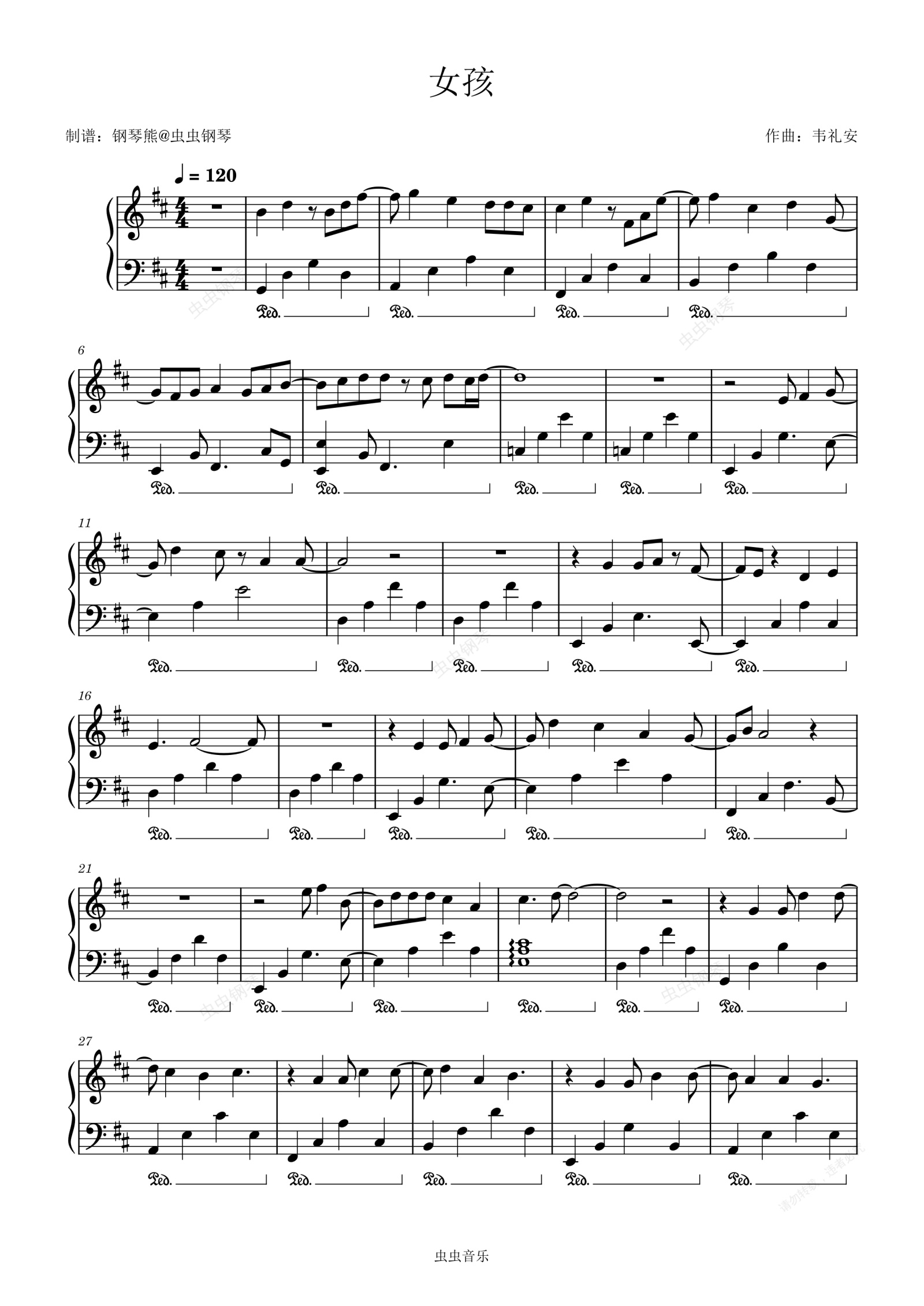 钢琴谱:《女孩》韦礼安 童锦程祖师爷之歌~喜欢的兄弟记得给谱子点点收藏哈~👇👇👇