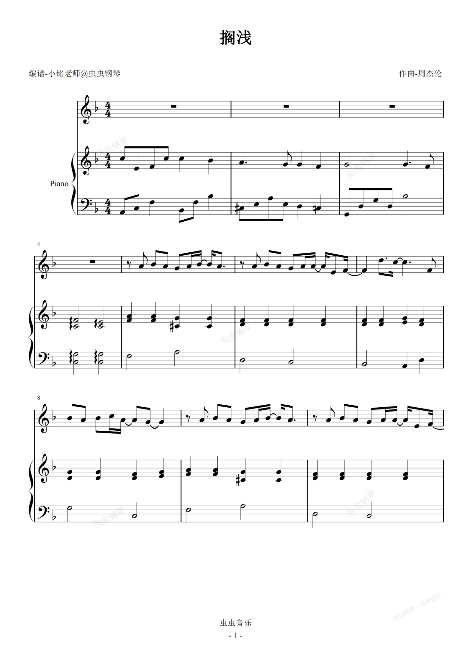 钢琴谱:搁浅 【超简易 弹唱】