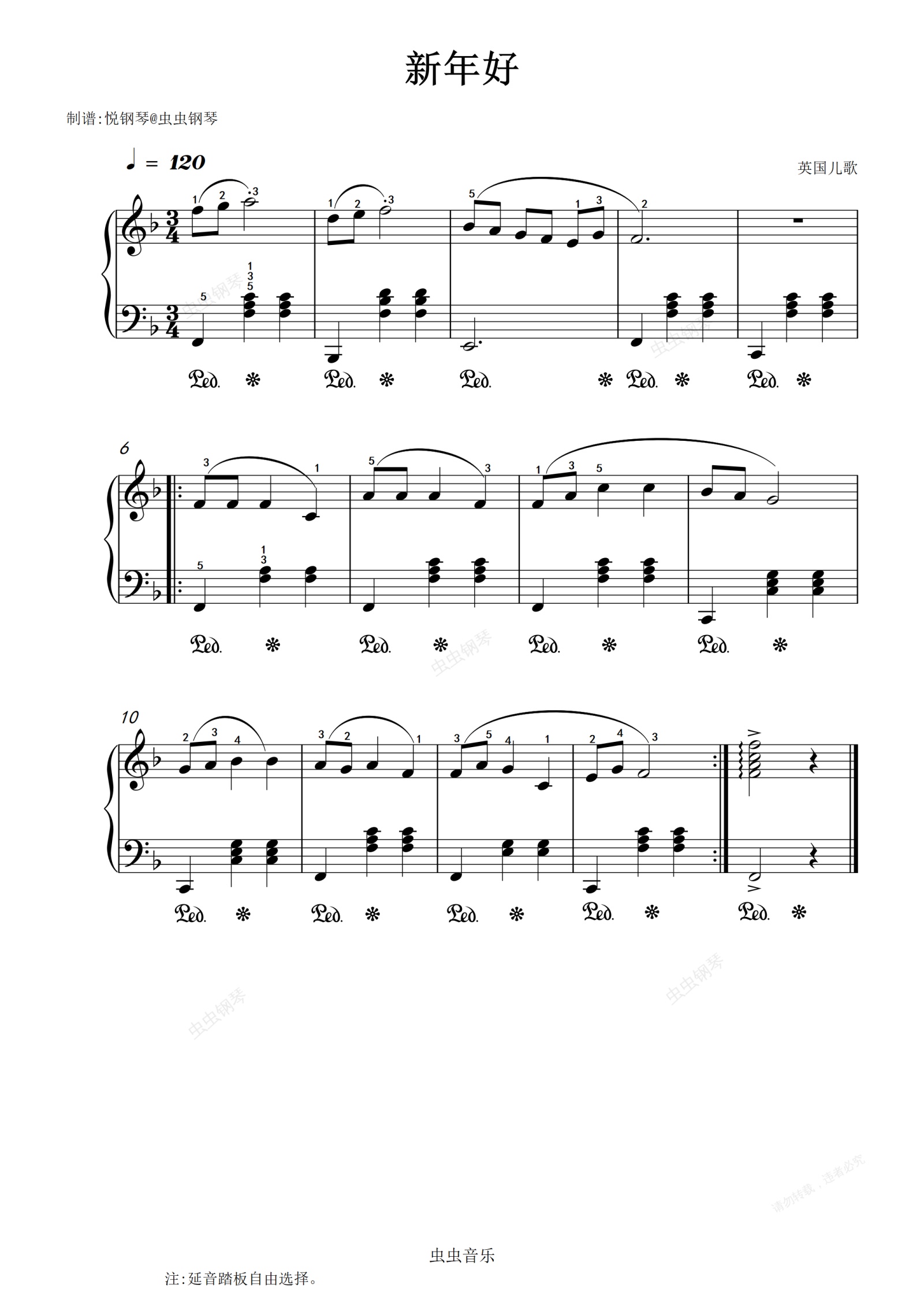 钢琴谱:新年好(免费乐谱)