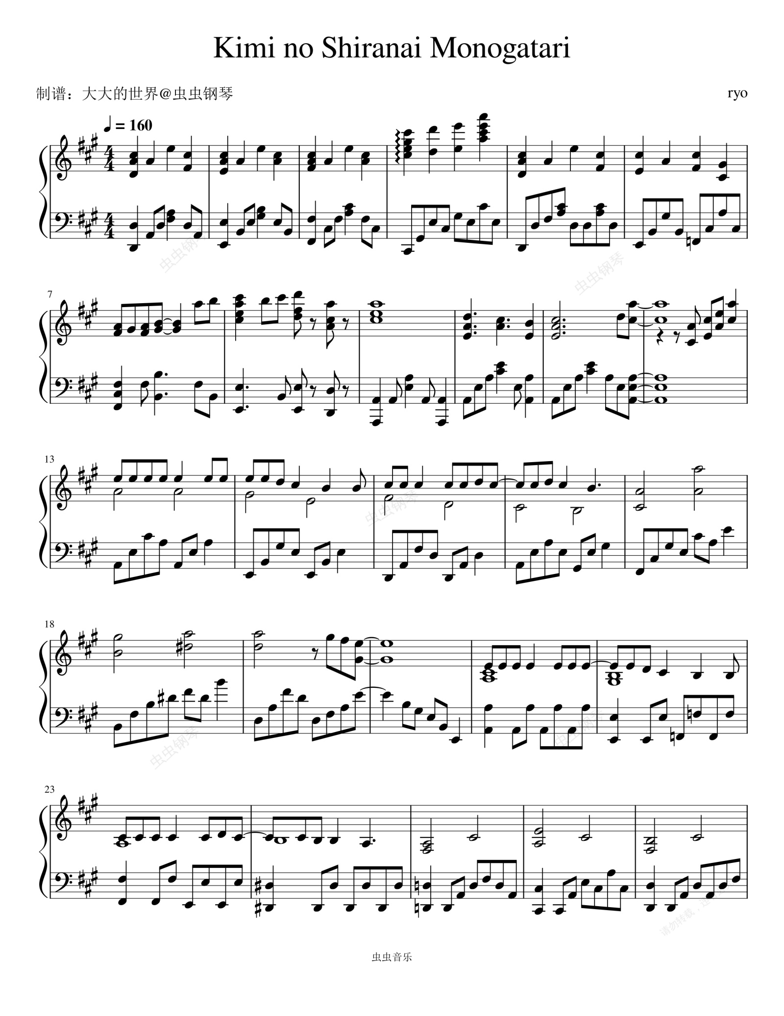 钢琴谱:你不知道的故事/君の知らない物語(《化物语》ED/片尾曲)