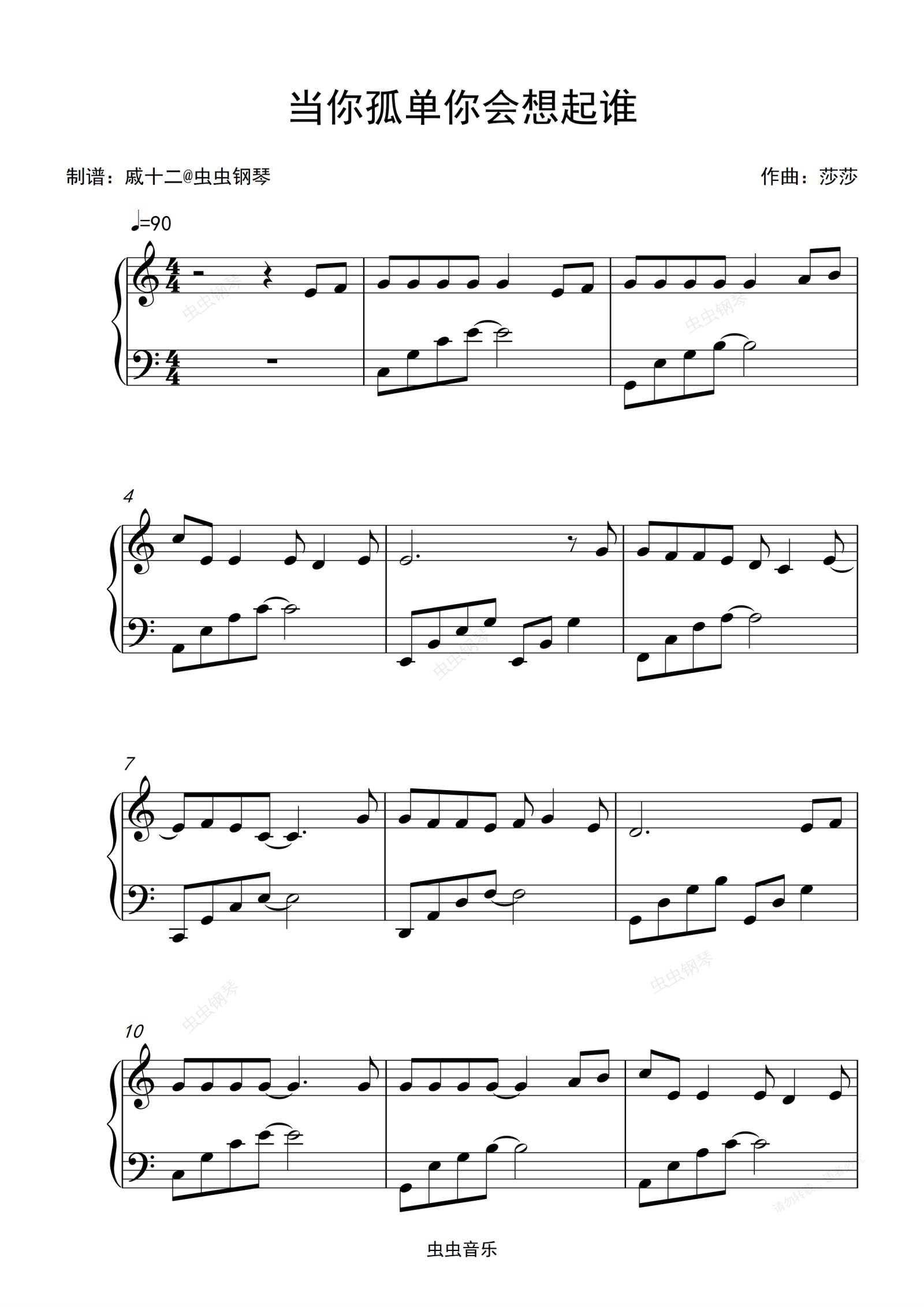 钢琴谱:当你孤单你会想起谁-C调简单版